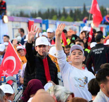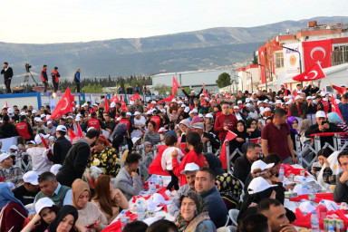 Devlet Bahçeli’den sonra kürsüye gelen Cumhurbaşkanı Recep Tayyip Erdoğan, “Yaşadığımız 6 Şubat depremleri sebebiyle bu yıl Ramazan ayını ve bayramı buruk bir şekilde yaşadık. Bu felaketlerde hayatını kaybeden 50 binin üzerindeki vatandaşımıza bir kez daha Allah’tan rahmet, yakınlarına başsağlığı diliyorum. Rabbimden ülkemizi ve milletimizi bir daha böyle ağır imtihanlara maruz bırakmamasını diliyorum” dedi.