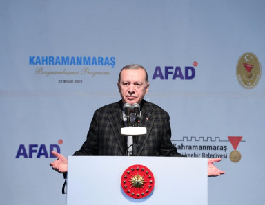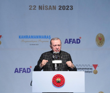 Erdoğan konuşmasının devamında, “Deprem bölgesinde sadece konut yapmıyoruz. Burada asıl yaptığımız şey iş yerleriyle, altyapısıyla, tarihi ve kültürel dokusunu koruyarak adeta yeni şehirler kurmaktır. Türkiye'nin tarihî bir seçim arifesinde olduğu bir dönemde biz önceliğimizi depremzedelerimizin yaralarının sarılmasına vermekten asla vazgeçmedik, vazgeçmeyeceğiz. Türkiye Yüzyılı vizyonumuzun ilk maddesine de bunu yerleştirdik. Ülkemizi afetlere karşı dirençli hale getirecek çalışmaları illerimizin tamamına yayıyoruz. Deprem bölgesi şehirlerini ihya ederken, İstanbul'dan başlayarak diğer şehirlerimizi hızla depreme karşı dayanıklı hâle getirmek için yeni destek programının müjdesini de milletimizle paylaştık. Riskli yapısını dönüştürmek isteyen vatandaşlarımıza maliyetinin yarısını devlet olarak biz vereceğiz” cümlelerine yer verdi.