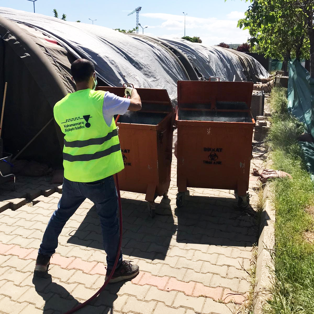 Kahramanmaraş Büyükşehir Belediyesi, bir yandan şehrin tekrar ayağa kaldırılması noktasında alt ve üstyapı çalışmalarını kesintisiz sürdürürken bir yandan da meydana gelebilecek salgın hastalıkların önüne geçerek halk sağlığını korumak için ilaçlama ve dezenfeksiyon uygulamalarına da devam ediyor. Çevre Koruma ve Kontrol Dairesi Başkanlığı koordinesindeki ekipler, geçici barınma merkezleri başta olmak üzere ortak kullanım alanlarında günlük rutin olarak dezenfeksiyon ve zararlı haşerelere karşı ilaçlama çalışmaları gerçekleştiriyor. İbadethane, lavabolar ve duş alanları da sık sık temizlenerek ve dezenfekte edilerek ortak kullanım alanlarında hijyen sağlanıyor. Çevre Koruma ve Kontrol Dairesi Başkanlığı’ndan yapılan açıklamada, halk sağlığının korunması noktasında temizlik, ilaçlama ve dezenfeksiyon çalışmalarının günlük rutin olarak devam edeceği belirtildi.