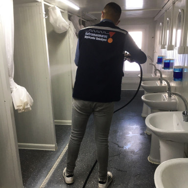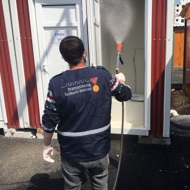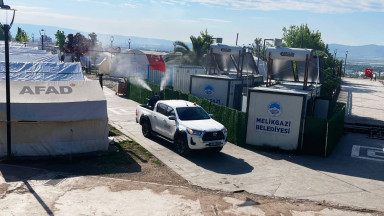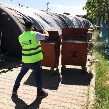 Büyükşehir Belediyesi, geçici barınma merkezleri başta olmak üzere ortak kullanım alanlarında günlük temizlik, ilaçlama ve dezenfeksiyon çalışmalarını sürdürüyor.