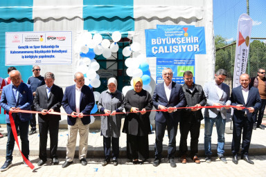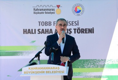 Kahramanmaraş Büyükşehir Belediyesi ve Spor Toto Teşkilat Başkanlığı iş birliğiyle hayata geçirilen ‘Her Mahalleye Halı Saha ve Pota’ projesi kapsamında TOBB Fen Lisesi’ne kazandırılan halı saha öğrencilerin hizmetine sunuldu. Gerçekleştirilen ziyarette Büyükşehir Belediye Başkanı Hayrettin Güngör, Gençlik ve Spor İl Müdürü Cemil Boz, İl Milli Eğitim Müdürü Yusuf Kahraman, okul idarecileri, öğretmenler ve öğrenciler yer aldı. Kısa bir konuşma yapan TOBB Fen Lisesi Müdürü İsmail Demir, okula kazandırılan yeni halı saha için Büyükşehir Belediye Başkanı Hayrettin Güngör’e teşekkür etti.