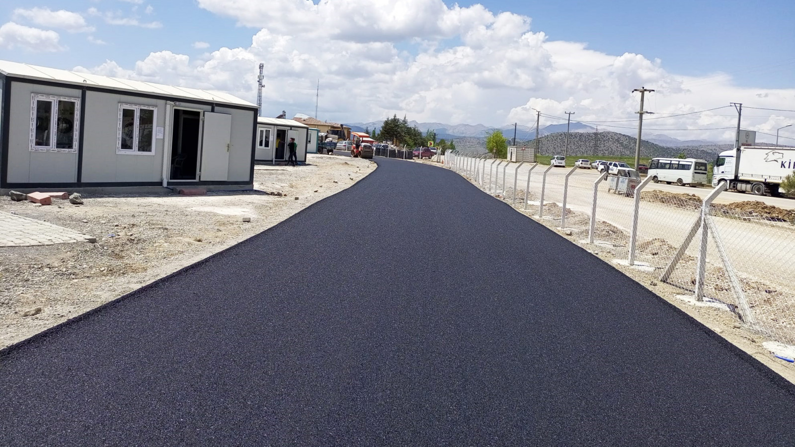 Büyükşehir Belediyesi, Göksun Konteyner Kent’te sürdürdüğü üstyapı imalatlarında sona geldi. Geçici barınma merkezine toplamda 25 bin metrekare kilit parke ve 10 bin metrekare sıcak asfalt kazandırılıyor.