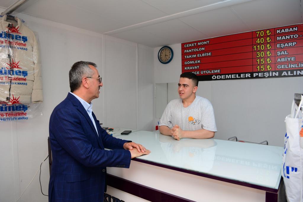 Şehrin çeşitli noktalarında vatandaşlarla bir araya gelmeyi sürdüren Kahramanmaraş Büyükşehir Belediye Başkanı Hayrettin Güngör, depremde iş yerleri yıkılan veya hasar alan esnafların ticari faaliyetlerini sürdürmesi için oluşturulan geçici çarşıları ziyaret etti. Geçici iş yerlerinde faaliyetlerini sürdüren esnaflarla sohbet eden ve işlerinde bereket dileyen Başkan Güngör, ziyaretlere ilişkin yaptığı açıklamada, “Asrın felaketinin ardından Sayın Cumhurbaşkanımızın liderliğinde bakanlıklarımız, kurum ve kuruluşlarımızla el birliğiyle yaralarımızı hızla sarıyoruz. Bir taraftan konteyner kentler tamamlanırken bir yandan kalıcı konutların inşası devam ediyor. Esnaflarımızın faaliyetlerini sürdürmesi ve ticaretin canlanması için de geçici çarşılar oluşturuyoruz. Bugün geçici çarşılarımızı ziyaret ederek esnaflarımızla bir araya geldik. Esnaflarımızın memnuniyetini görünce bizler de mutlu olduk” dedi.