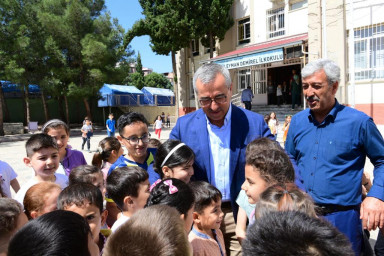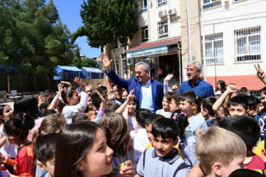 Süleyman Demirel İlkokulu’nda öğrencilerle bir araya gelen Başkan Güngör, “Yavrularımıza daha yaşanabilir bir şehir bırakmak için tüm imkân ve kabiliyetimizle gayret ediyoruz. Şehrimiz ve hemşehrilerimiz için gece gündüz var gücümüzle çalışıyoruz” dedi.