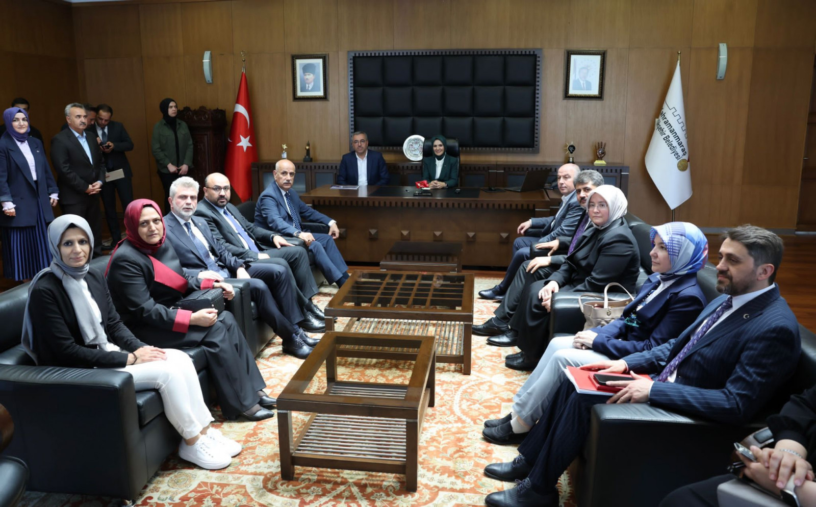 Kahramanmaraş Büyükşehir Belediye Başkanı Hayrettin Güngör, programı kapsamında şehre gelen Aile ve Sosyal Hizmetler Bakanı Mahinur Özdemir Göktaş’ı makamında ağırladı. Önceki dönem Tarım ve Orman Bakanı ve AK Parti Kahramanmaraş Milletvekili Prof. Dr. Vahit Kirişci, Vali Ömer Faruk Coşkun, AK Parti Kahramanmaraş Milletvekili Ömer Oruç Bilal Debgici, Dr. Tuba Köksal ve Prof. Dr. Mehmet Şahin ile AK Parti İl Başkanı Fırat Görgel’in de yer aldığı ziyarette Başkan Güngör, Bakan Göktaş ve beraberindeki heyete; Büyükşehir Belediyesi tarafından engelli ve yaşlılara yönelik hayata geçirilen projeler, depremzedelere sağlanan sosyal yardımlar, YADES projeleri, kadın ve aile hizmetleri ve deprem sonrası psiko-sosyal destek çalışmalarına ilişkin bilgiler aktardı.