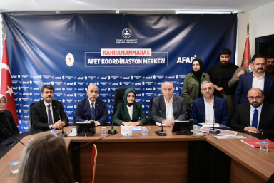 Kahramanmaraş Büyükşehir Belediye Başkanı Hayrettin Güngör, bir dizi ziyaret ve incelemelerde bulunmak üzere şehre gelen Aile ve Sosyal Hizmetler Bakanı Mahinur Özdemir Göktaş ile Afet Koordinasyon Merkezi’nde gerçekleştirilen istişare ve değerlendirme toplantısına katıldı. Önceki dönem Tarım ve Orman Bakanı ve AK Parti Kahramanmaraş Milletvekili Prof. Dr. Vahit Kirişci, Vali Ömer Faruk Coşkun, AK Parti Kahramanmaraş Milletvekilleri, İl Başkanı Fırat Görgel ile bakanlık ve kurum yetkililerinin de yer aldığı toplantıda, şehirde yürütülen ve planlanan çalışmalara ilişkin değerlendirmelerde bulunuldu. Toplantıya ilişkin açıklamalarda bulunan Güngör, “Deprem sonrası alanındaki çalışmaları yerinde tespit etmek üzere şehrimize gelen Aile ve Sosyal Hizmetler Bakanımız Sayın Mahinur Özdemir Göktaş, önceki dönem Tarım ve Orman Bakanımız Sayın Vahit Kirişci, milletvekillerimiz, il başkanımız ve AFAD yetkililerimizle şehrimizde yürütülen çalışmalara ilişkin istişare ve değerlendirme toplantımızı gerçekleştirdik. Tüm paydaşlarımızla birlikte şehrimizin her alanda yeniden imarı ve inşası noktasında yoğun gayret gösteriyoruz” ifadelerini kullandı.