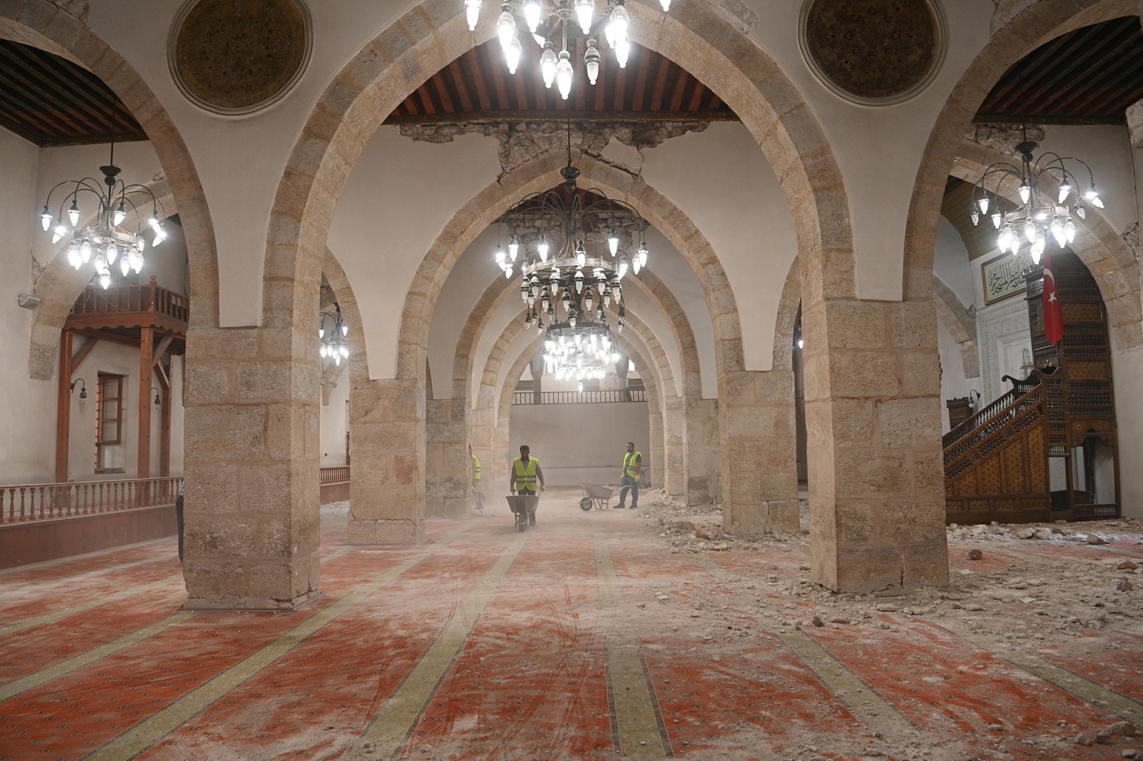 Kahramanmaraş Büyükşehir Belediye Başkanı Hayrettin Güngör, 6 Şubat depremlerinde hasar gören Ulu Cami’de başlatılan restorasyon çalışmalarını yerinde inceledi. Büyükşehir Belediyesi Meclis Üyeleri Hanifi Toptaş ve Ramazan Kibar’ın da yer aldığı incelemelerde Başkan Güngör, çalışmalara ilişkin son bilgileri aldı. Vakıflar Genel Müdürlüğü tarafından yürütülen restorasyon çalışmalarının kısa süre içerisinde tamamlanarak Ulu Cami’nin tekrar ibadete açılacağını belirten Başkan Hayrettin Güngör, “6 Şubat’ta yaşadığımız büyük afette Ulu Cami’mizin minaresi yıkıldı, camimiz hasar aldı. Vakıflar Genel Müdürlüğü, Ulu Cami’nin restorasyon projesini hazırladı ve çalışmalara başladı. Hızlı bir çalışma yürütülüyor. Şehrimiz için son derece önemli bir yere sahip olan Ulu Cami’miz inşallah çok kısa bir sürede restore edilerek tekrardan ibadete açılacak. Bu süreçte emeği geçen herkese teşekkür ediyoruz” ifadelerini kullandı.