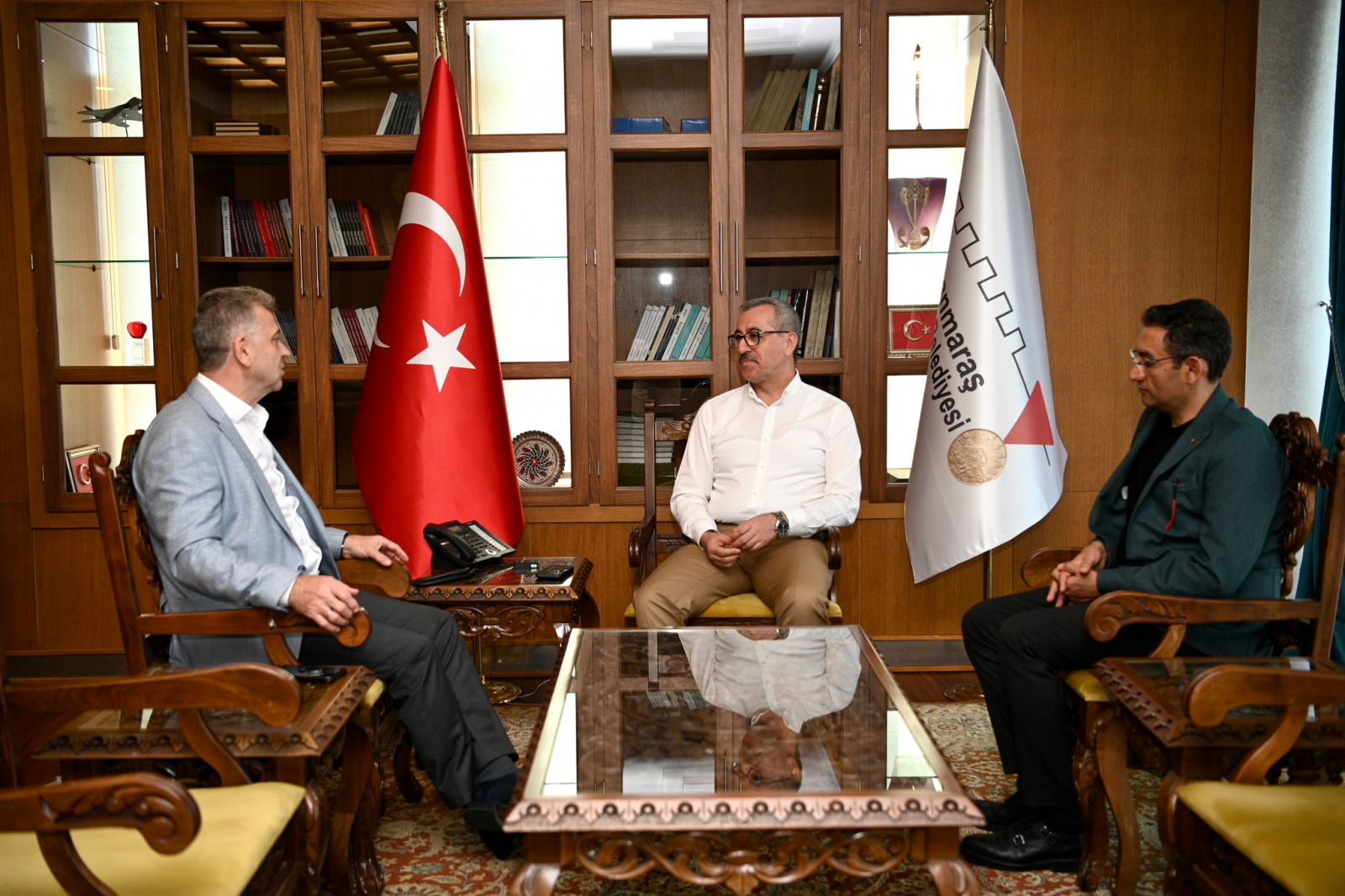Kahramanmaraş Büyükşehir Belediye Başkanı Hayrettin Güngör, 6 Şubat depremlerinin ardından şehrin tekrar ayağa kaldırılması ve vatandaşların barınma, gıda ve hijyen gibi ihtiyaçlarının karşılanması noktasında yardıma koşan Gaziosmanpaşa Belediye Başkanı Hasan Tahsin Usta’yı misafir etti. Bir dizi ziyarette bulunmak ve programa katılmak üzere Kahramanmaraş’a gelen Usta’yı makamında ağırlayan Başkan Hayrettin Güngör, şehirdeki son duruma ilişkin de bilgiler aktardı. Nazik ziyaretleri ve destekleri için Gaziosmanpaşa Belediye Başkanı Hasan Tahsin Usta’ya teşekkür eden Başkan Hayrettin Güngör, “Asrın felaketinin ardından ülkemizin dört bir yanından kamu kurum ve kuruluşlarımız yardımımıza koştu. Bunlardan birisi de Gaziosmanpaşa Belediyesi’ydi. Sayın Usta nezdinde tüm Gaziosmanpaşa halkına şükranlarımızı sunuyoruz. Deprem sürecinde şehrimize verdikleri destekler ve nazik ziyaretleri için de Sayın Hasan Tahsin Usta’ya teşekkür ediyoruz” dedi.