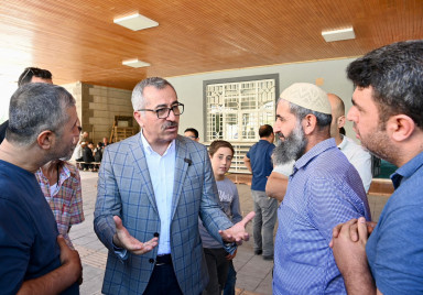 6 Şubat depremlerinde hasar gören ve bugün tekrar ibadete açılan Doğukent Camii’nde eda ettiği Cuma Namazı’nın akabinde bölgede vatandaşlarla da bir araya gelen Başkan Güngör, “Şehrimizin imar planlarını önemli ölçüde tamamladık. İnşallah Doğukent bölgemizi de önümüzdeki günlerde netleştireceğiz” dedi.