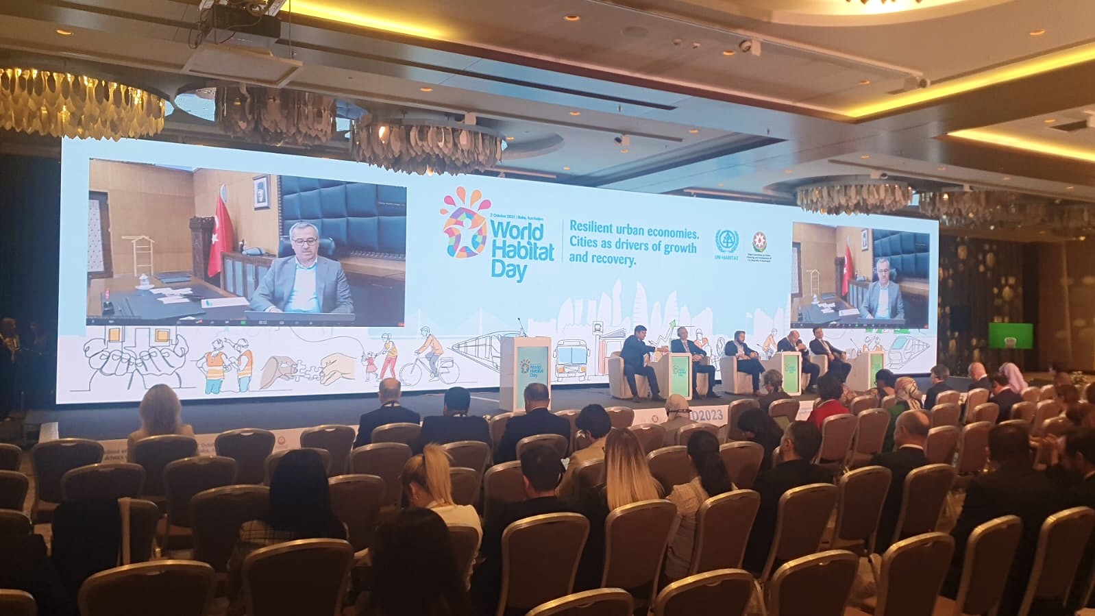 Azerbaycan’da düzenlenen “Kriz Sonrası Şehir Alanında Kalkınma” oturumuna videokonferans ile katılan Başkan Güngör, “Depremin ilk anından itibaren tüm imkân ve kabiliyetiyle yanımızda olan ve şehrimizde yapımına başlanan bin konutluk Azerbaycan Mahallesi için can Azerbaycan’a teşekkür ediyoruz” dedi.