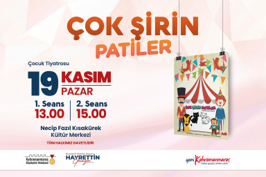 Yeni Kahramanmaraş’ın imarı ve inşası noktasında tüm alanlarda faaliyetlerini sürdüren Kahramanmaraş Büyükşehir Belediyesi, şiir ve edebiyatın başkentinde kültür sanat etkinliklerini de vatandaşlarla buluşturmayı sürdürüyor. Kasım Kültür Sanat Sezonu’nda tiyatrodan söyleşiye, okur - yazar buluşmasından konferansa çeşitli etkinlikler düzenleyen Büyükşehir, ara tatilin son gününde ‘Çok Şirin Patiler’ adlı müzikal tiyatro gösterisini minik izleyicilerin beğenisine sunacak. 19 Kasım Pazar günü Necip Fazıl Kısakürek Kültür Merkezi’nde gerçekleştirilecek gösteri, saat 13.00 ve 15.00’da iki seans olarak sahnelenecek. Büyükşehir Belediyesinden yapılan açıklamada, Kasım ayı içerisinde ücretsiz olarak düzenlenecek etkinliklere tüm vatandaşların davetli olduğu ve Kasım Kültür Sanat Takvimi’ne https://kahramanmaras.bel.tr/duyuru/2023/11/06/kasim-ayi-kultur-sanat-takvimi internet adresinden ulaşılabileceği belirtildi.