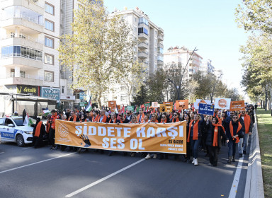 Büyükşehir Belediyesi, Valilik ve KADEM iş birliğiyle ‘Şiddete Karşı Ses Ol!’ temalı yürüyüş gerçekleştirildi. Başkan Güngör, “Büyükşehir Belediyesi olarak; ‘Kadına Şiddet, İnsanlığa İhanettir’ diyerek şiddetle çok boyutlu mücadeleyi var gücümüzle sürdürüyoruz” dedi.