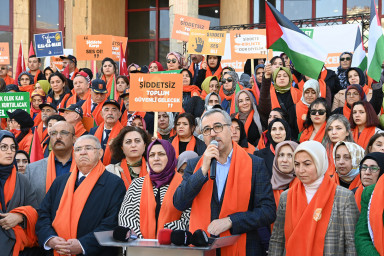Yürüyüşün son noktası olan Necip Fazıl Kısakürek Kültür Merkezi’nde düzenlenen programda konuşan Büyükşehir Belediye Başkanı Hayrettin Güngör, “25 Kasım Kadına Yönelik Şiddete Karşı Uluslararası Mücadele Günü vesilesiyle savaş mağduru Filistinli kadınlar özelinde şiddet gören tüm kadınlar için bugün bir aradayız. Öncelikle sevgisiyle dünyayı güzelleştiren hanım kardeşlerimizi sevgi, saygı ve hürmetle selamlıyorum. Ne yazık ki 7 Ekim’den bu yana şiddetin bütün türlerinin en acımasız haliyle yaşandığı bir vahşete şahitlik ediyoruz. İsrail, Gazze’de kadın, çocuk demeden herkesi ve her yeri vahşice bombalıyor. Camileri, hastaneleri hedef alıyor. Gazze halkı, en temel insani ihtiyaçlara bile ulaşamıyor. Bu konuda dünyanın sessiz kaldığına şahit oluyoruz. Türk halkı ve lideri Sayın Recep Tayyip Erdoğan, her ortamda en yüksek sesle bu zulme hayır diyor. Filistinli kardeşlerimiz de inşallah hak ettiği bağımsızlığa kavuşacaktır” cümlelerini kaydetti.