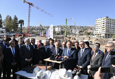 Azerbaycan Mahallesi inşaat alanında basın mensuplarına değerlendirmelerde bulunan Çevre, Şehircilik ve İklim Değişikliği Bakanı Mehmet Özhaseki, “Millet olarak bin yıllık Anadolu medeniyetimizde karşılaşabileceğimiz en büyük felaketi yaşadık. Böyle bir durumda bir araya gelerek yaralarımızı sarmaya devam ediyoruz. Bu kapsamda hükümet olarak hiçbir zaman ekonomi meselesini gündeme getirmeden neler yapabileceğimiz hususunda gayret ediyoruz. Kahramanmaraş depremlerinde 850 bin kadar bağımsız birim zarar gördü. Biz 200 bin konutun ihalesini yaptık, inşaları devam ediyor. Her ay 40-50 bin civarı konutun teslimine de Aralık ayı itibarıyla başlıyoruz. Aynı zamanda vatandaşlarımızın talepleri doğrultusunda yerinde dönüşüm projelerini de başlatmış bulunmaktayız. Her türlü kolaylığı sağlayarak vatandaşlarımıza desteklerimiz sürüyor. Köy evlerine yönelik başlattığımız çelik yapılaşmayla 100 bin konutun da projesi tamamlandı. Azerbaycan Devleti’nin yaptığı bin konutluk mahallede çalışmalar süratle devam ediyor. Hükümet olarak bizim birinci önceliğimiz deprem bölgesinde hasarların giderilmesi, yaraların sarılması” cümlelerini kaydetti.