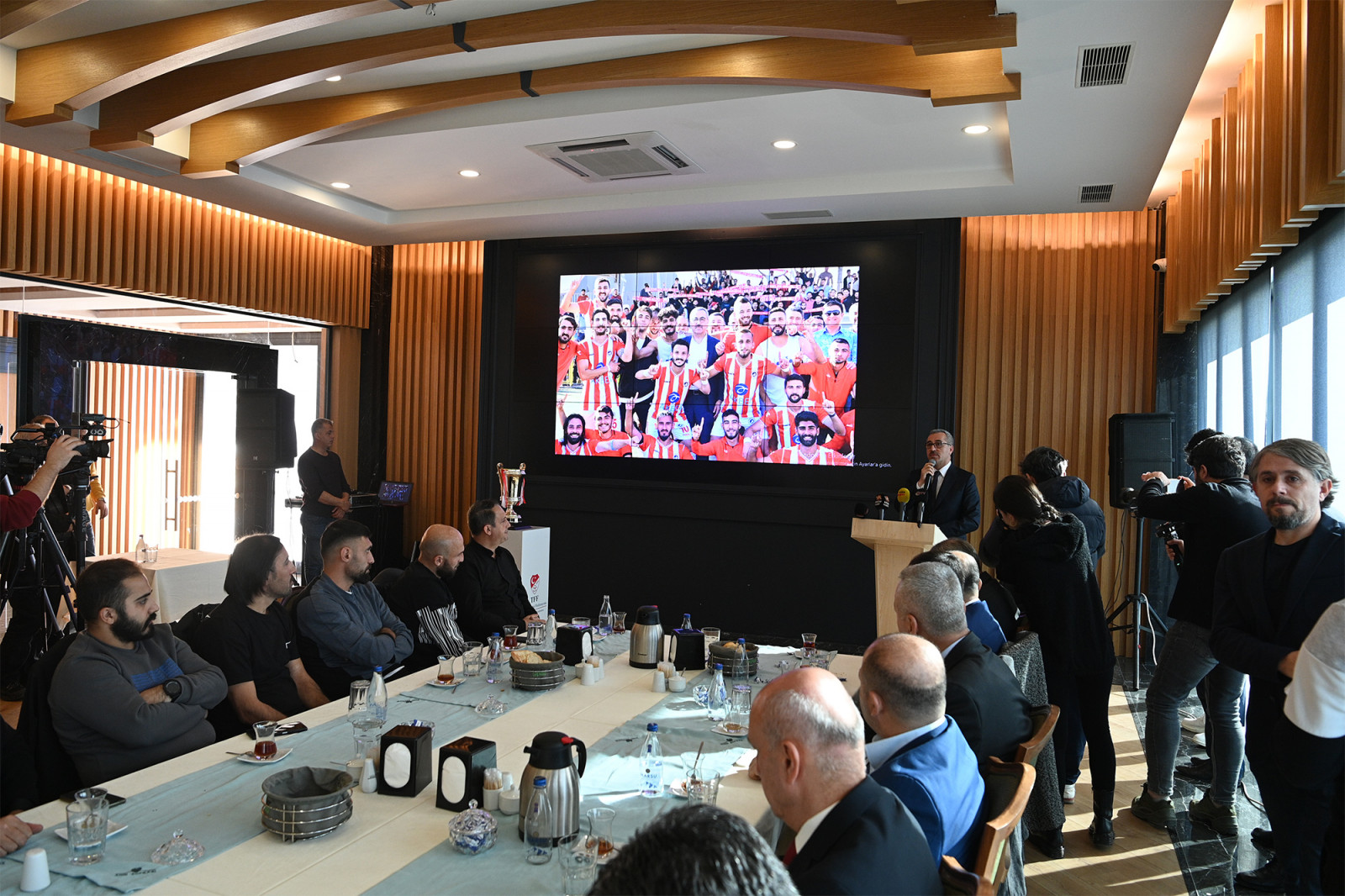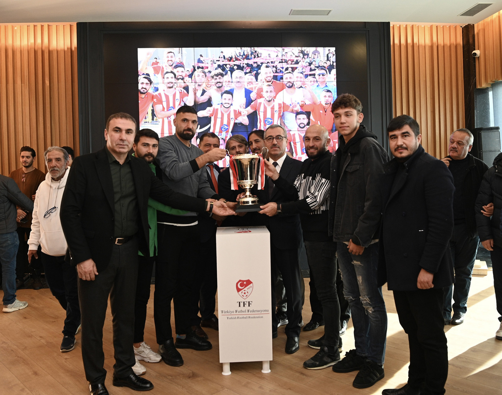 Şehre kazandırılması planlanan yeni stadyum hakkında da bilgiler aktaran Başkan Güngör, “Deprem öncesi stadyum projemiz vardı. Gençlik ve Spor Bakanlığımız ile yaptığımız görüşmeler neticesinde Gaziantep Yolu üzerine yeni bir stadyum kazandıracağız. Çok kapsamlı bir spor kompleksi olacak. 12 Şubat Stadyumunun bulunduğu alan ise; kültür, spor ve sosyal alan olarak değerlendirilecek. Hemşehrilerimiz için cazibe alanı oluşturacağız” dedi. Konuşmaların ardından şampiyonluk kupası Büyükşehir Belediye Başkanı Hayrettin Güngör ve takım kaptanı Rasim Mutlu’nun ellerinde yükseldi.