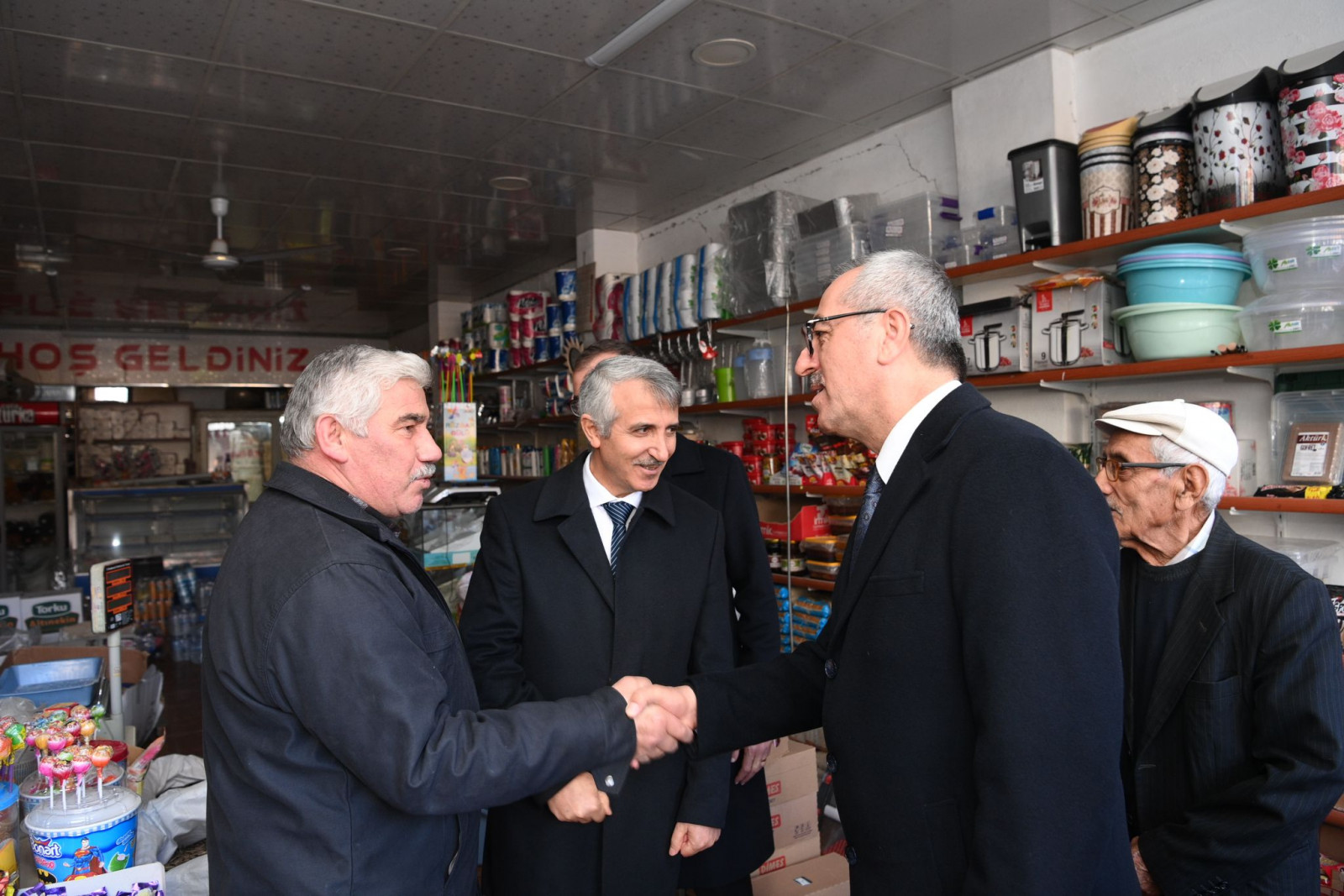 Yeni Kahramanmaraş’ın imarı ve inşası noktasında yoğun gayretini sürdüren Kahramanmaraş Büyükşehir Belediye Başkanı Hayrettin Güngör, Vali Mükerrem Ünlüer ile Afşin’de bir dizi ziyaret ve incelemelerde bulundu. İl Jandarma Komutanı Tuğgeneral Gökhan İnan, İl Emniyet Müdürü Nurettin Gökduman ve AFAD İl Müdürü Tayfun Temur’un da yer aldığı program kapsamında Başkan Güngör ve Vali Ünlüer; Afşin Kaymakamı Mehmet Naim Akgül ve Belediye Başkanı Mehmet Fatih Güven’i ziyaret etti. Devamında Afşin Millet Bahçesi ve Afşin-Elbistan Termik Santrali’nde incelemelerde bulunan heyet, Ashab-ı Kehf Cami altında bulunan halk kütüphanesinde gençlerle bir araya geldi. Heyet programı kapsamında, Afşinbey Caddesi’nde ticari faaliyetlerini sürdüren esnafları da iş yerlerinde ziyaret ederek hayırlı işler temennisinde bulundu.