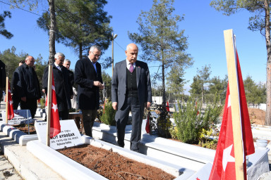 Kahramanmaraş Büyükşehir Belediye Başkanı Hayrettin Güngör, 66. Hükümet Tarım ve Orman Bakanı Prof. Dr. Vahit Kirişci ile 6 Şubat depremlerinin 1. yıl dönümü öncesi Kapıçam Şehir Mezarlığı’nı ziyaret ederek asrın felaketinde hayatını kaybeden vatandaşları kabirleri başında dualarla yâd etti. Vali Mükerrem Ünlüer, İl Jandarma Komutanı Tuğgeneral Gökhan İnan ve AK Parti İl Başkan Vekili Cüneyt Doğan’ın da yer aldığı ziyarette, 6 Şubat depremlerinde ahirete irtihal eden vatandaşların yakınlarıyla da bir araya gelen heyet, baş sağlığı dileklerini ileterek acılarını paylaştı. Başkan Hayrettin Güngör, “6 Şubat depremlerinin 1. yıl dönümü yaklaşırken asrın felaketinde hayatını kaybeden kardeşlerimizi; önceki dönem Tarım ve Orman Bakanımız Sayın Vahit Kirişci, Valimiz Sayın Mükerrem Ünlüer, İl Jandarma Komutanımız ve İl Başkan Vekilimizle birlikte kabirleri başında dualarla yâd ettik. 6 Şubat depremlerinde kaybettiğimiz tüm canlarımıza bir kez daha Allah’tan rahmet diliyoruz” ifadelerini kullandı.