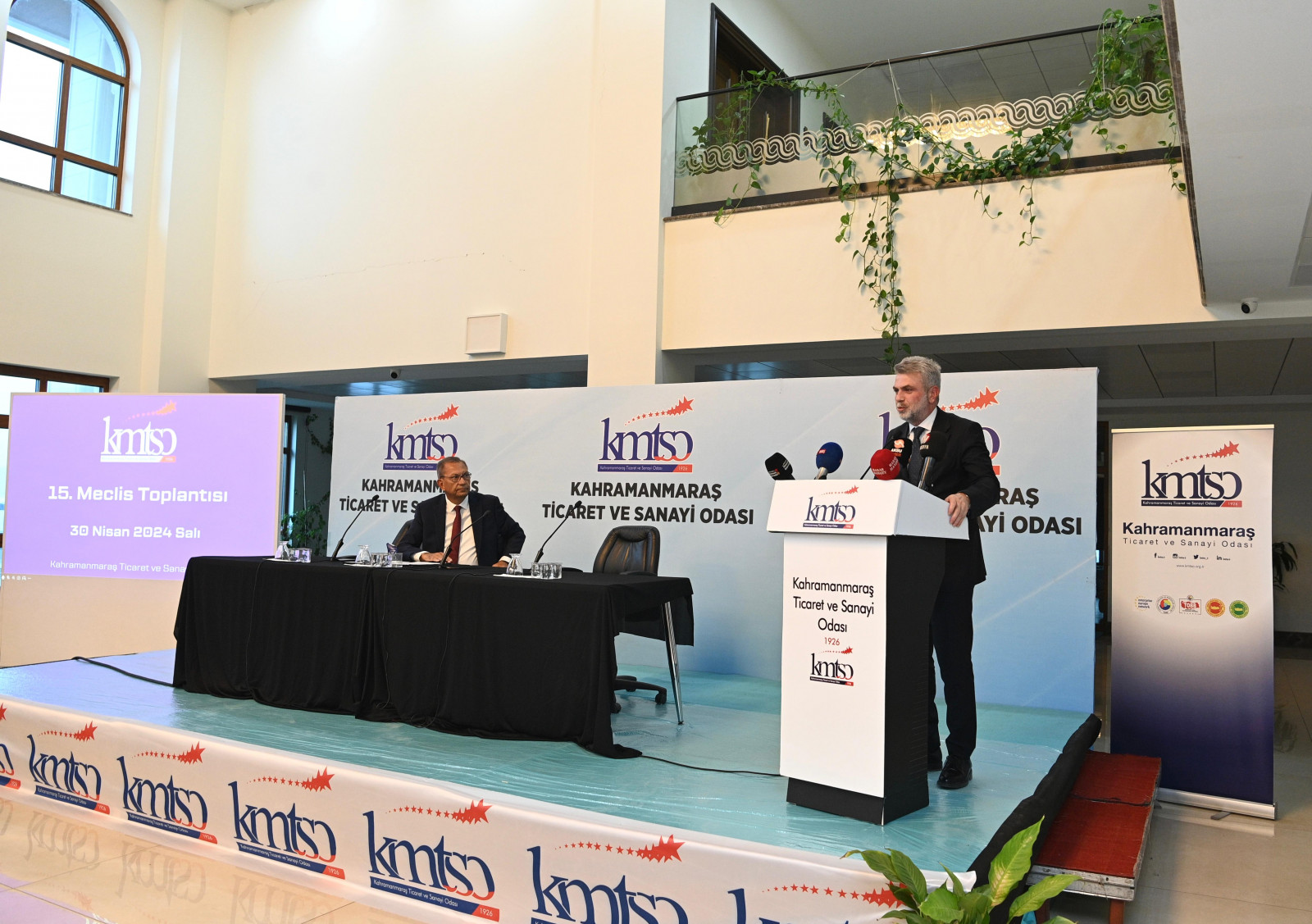 Kahramanmaraş’a hizmet noktasında paydaş kurumlarla olan iş birliği ve koordinasyonu çok önemseyen Büyükşehir Belediye Başkanı Fırat Görgel, Kahramanmaraş Ticaret ve Sanayi Odasının 15. Olağan Meclis Toplantısı’na katıldı. KMTSO Meclis Başkanı Hanefi Öksüz Başkanlığında Ticaret Borsası Fuaye Alanı’nda gerçekleştirilen toplantıda; KMTSO Yönetim Kurulu Başkanı Mustafa Buluntu, meclis üyeleri ve iş insanları da yer aldı. Toplantıda konuşan Büyükşehir Belediye Başkanı Fırat Görgel, “31 Mart Mahalli İdareler Seçimlerinin ardından mazbatamızı alarak göreve başladık. Hamdolsun o günden itibaren tüm paydaşlarımızla koordineli bir şekilde faaliyetlerimizi sürdürüyoruz. Tüm belediye başkanlarımızla birlikte bir toplantı gerçekleştirerek önceliğimiz olan Kahramanmaraş’ımıza nasıl daha verimli hizmet edebilirizi konuştuk. Bu birlik ve beraberlik anlayışıyla yolumuza devam ediyoruz” cümlelerini kaydetti.