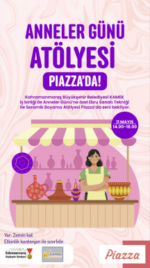 Sosyal belediyecilik çerçevesinde Başkan Fırat Görgel öncülüğünde toplumun tüm kesimlerine yönelik çeşitli programlar gerçekleştiren, daima vatandaşların yanında olan, kişisel gelişimleri noktasında onlarca atölye düzenleyen Kahramanmaraş Büyükşehir Belediyesi, Anneler Günü’nü de unutmuyor. Büyükşehir Belediyesi Meslek Edindirme Kursu (KAMEK) ve Piazza AVM iş birliğiyle 11 Mayıs Cumartesi günü Ebru Sanatı Tekniği ve Seramik Boyama atölyeleri düzenlenecek. 14.00 – 18.00 saatleri arasında Piazza AVM’nin zemin katında düzenlenecek atölyelere başta anneler olmak üzere tüm kadınlar davet edilirken Büyükşehir Belediyesinden yapılan açıklamada, birbirinden eğlenceli ve renkli atölyelerin vatandaşlarla buluşmaya devam edeceği belirtildi.