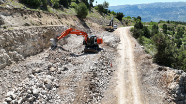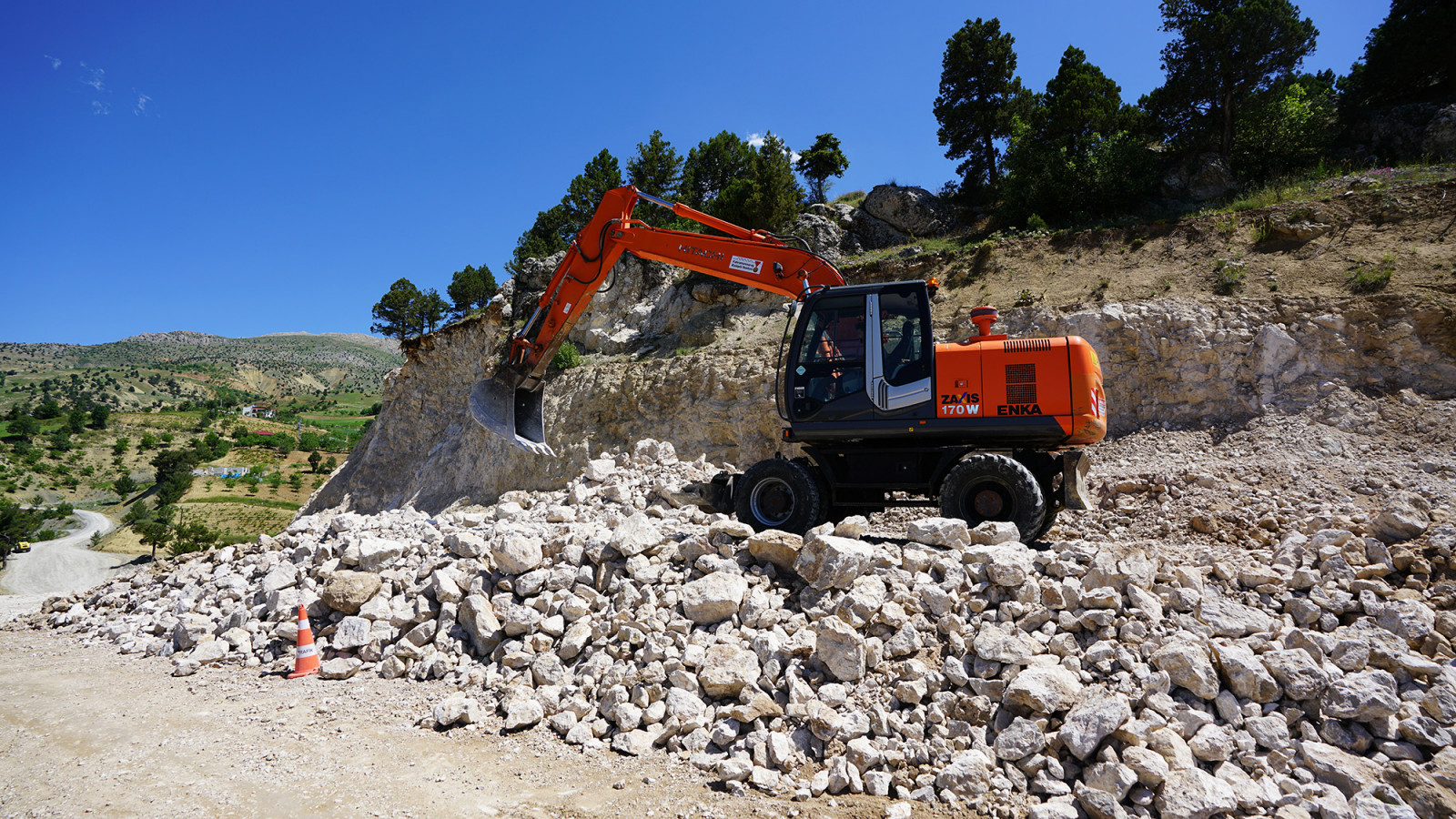 Şehrin ulaşım ağını geliştirmek ve güçlendirmek için şehir merkezi, ilçe ve kırsal mahalle ayırt etmeksizin yol bakım, onarım ve yenileme çalışmalarını kesintisiz sürdüren Kahramanmaraş Büyükşehir Belediyesi, Bertiz bölgesine ulaşım sağlayan grup yolundaki önemli bir sorunu daha çözüme kavuşturuyor. Grup yolunun Çatmayayla Mahallesi’nde bulunan kısmında viraj ve darlığı sebebiyle ulaşımda aksamalara neden olan bölgeye yeni bir bağlantı yolu oluşturuluyor. 14 metre genişlik ve 24 metre derinliğe sahip dolgu yöntemiyle oluşturulan yeni bağlantı yoluyla arterdeki ulaşım sorununun çözüme kavuşturulması hedefleniyor. Dolgu ve zemin hazırlıklarının tamamlanmasının ardından yeni bağlantı yolu sathi asfalt ile kaplanacak.