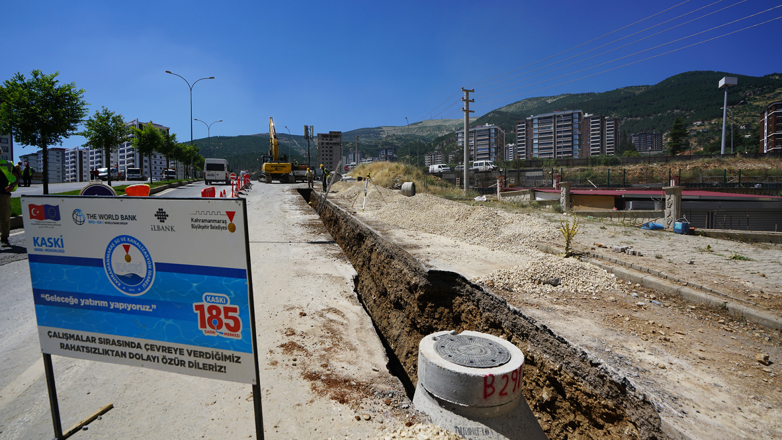 6 Şubat depremlerinin ardından şehri tekrar ayağa kaldırmak için tüm alanlarda yatırımlarını durmaksızın sürdüren Kahramanmaraş Büyükşehir Belediyesi, altyapı seferberliğine de devam ediyor. Cumhurbaşkanı Recep Tayyip Erdoğan öncülüğünde şehre sağlanan 10 Milyar TL’lik destekle hayata geçirilen proje kapsamında ilk etap çalışmaları hummalı bir şekilde ilerliyor. Bu kapsamda KASKİ Genel Müdürlüğü koordinesindeki ekipler, Onikişubat ilçesi Hürriyet Mahallesi’nde altyapı imalatlarına devam ediyor. 500 Milyon TL’lik yatırımla hayata geçirilen ilk etap kapsamında şehre; 17 adet depo, 45 kilometre içmesuyu ve 10 kilometre kanalizasyon hattı inşa edilecek.