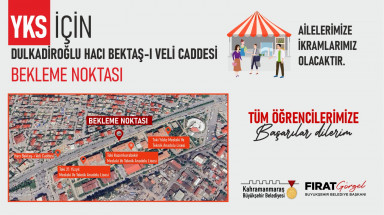 YKS’ye girecek adaylara ücretsiz ulaşım imkânı sağlayan Büyükşehir Belediyesi, sınav günü KSÜ Avşar Kampüsü ve Dulkadiroğlu Hacı Bektaş-ı Veli Caddesi’nde bekleme noktası oluşturarak çeşitli ikramlarda bulunacak. Ayrıca, mobil ekipler de ihtiyaçların karşılanması için sınav günü sahada olacak.