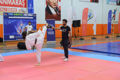 Gençlerin yaz tatilini daha eğlenceli ve verimli şekilde değerlendirmeleri ve şehirde sporu teşvik etmek için Kahramanmaraş Büyükşehir Belediyesi ve Gençlik ve Spor İl Müdürlüğü iş birliğiyle 3 – 18 yaş aralığındaki çocuklara yönelik düzenlenen GSB Spor Okulları ve GSB Engelsiz Spor Okulları’nın açılışı gerçekleştirildi. Osman Sayın Spor Salonu’nda gerçekleştirilen programda; Büyükşehir Belediye Başkan Vekili Mehmet Beşen’in yanı sıra Kahramanmaraş İstiklal Üniversitesi Rektörü Prof. Dr. İsmail Bakan, Vali Yardımcısı Muhammed Akın, Onikişubat Kaymakamı Salih Çiğdem, AK Parti İl Başkanı Cüneyt Doğan, Gençlik ve Spor İl Müdürü Cemil Boz, Dulkadiroğlu Belediye Başkan Yardımcısı Fatih Yıldız, Amatör Spor Kulüpleri Federasyonu Başkanı Ekrem Karaoğlan, kulüp yöneticileri, antrenör ve sporcular da yer aldı. Sportif ve dans gösterileri ile müzik dinletisinin de gerçekleştirildiği açılış programı renkli anlara sahne oldu.
