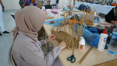 Kurs eğitmeni Nuray İrem Yavuz, "Atölyemizde kursiyerlerimiz bir yandan geri dönüşümden yeni ürünler oluştururken bir yandan da depremin getirdiği psikolojik travmaları bir nebze de olsa geride bırakma fırsatı buluyor. Atölyemizde geri dönüşümden faydalanarak supla, sepet, abajur ve kapı süsü gibi çeşitli ürünler oluşturuyoruz. Atık kâğıt ve cam gibi maddeleri atölyemizde daha kullanılabilir hale getiriyoruz. Kadınlar burada hem sosyalleşme hem de el becerilerini geliştirme imkânı buluyor. Ayrıca burada aldıkları eğitimle ürettikleri ürünlerin satışını yaparak aile ekonomisine de katkı sağlıyorlar" diye konuştu.