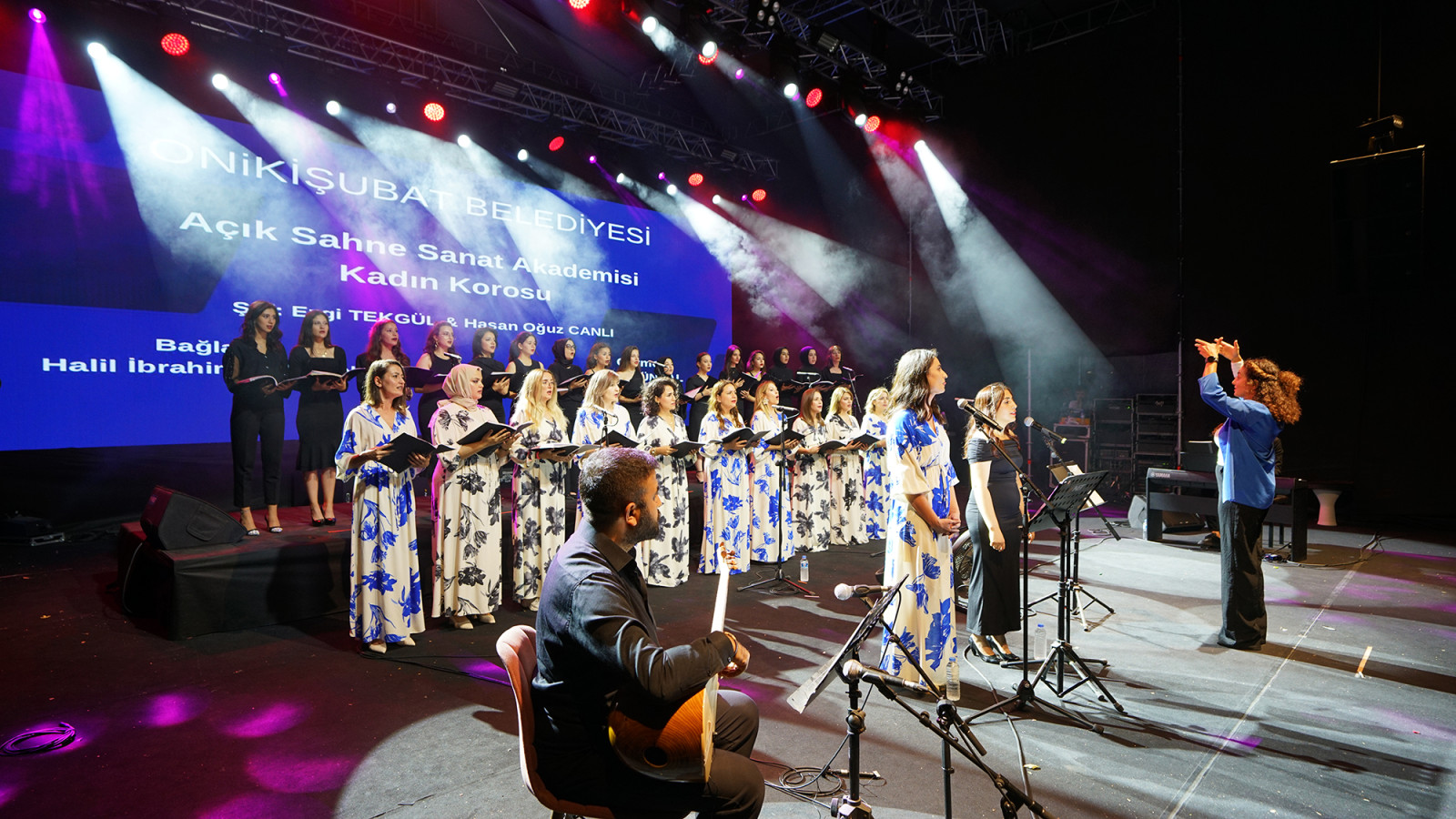 Kahramanmaraş Büyükşehir Belediyesinin Uluslararası Geleneksel Ağustos Fuarı’nda son 2 güne girerken vatandaşların fuara ilgisi hala ilk günkü gibi devam ediyor. 7’den 70’e yüzbinlerce vatandaşın ziyaret ettiği fuarın 21’inci gününde müzik ziyafeti yaşandı. Etkinlik takvimi kapsamında, Açık Sahne Sanat Akademisi Kadın Korosu, KAFUM Fuar Alanında sahne aldı. Müzikseverlerin büyük bir ilgiyle takip ettiği gecede kadın korosu, Ezgi Tekgül ve Hasan Oğuz Canlı şefliğinde; Kızılcıklar Oldu Mu, Sevda Ateşten Bir Gömlek, Ela Gözlü Nazlı Yarim, Burçak Tarlası, Sarı Gelin, Kesik Çayır ve Çay Elinden Öteye gibi birbirinden değeri eserleri dinleyiciler için seslendirdi. Müzikseverler de hep bir ağızdan koroya eşlik ederek geceye renk kattı. Kadın korosu, seslendirdiği eserlerle kulakların pasını silerken katılımcılar etkinlikten çok memnun kaldığını belirterek Büyükşehir Belediyesine teşekkür etti.