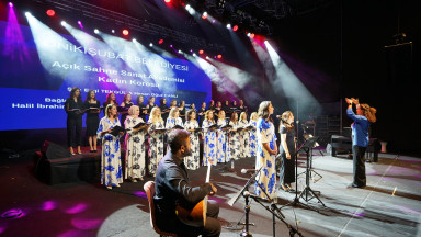 Büyükşehir Belediyesinin Geleneksel Ağustos Fuarı’nda Açık Sahne Sanat Akademisi Kadın Korosu sahne aldı. Koro, seslendirdiği eserlerle kulakların pasını silerken, müzikseverler de hep bir ağızdan koroya eşlik ederek geceye renk kattı.