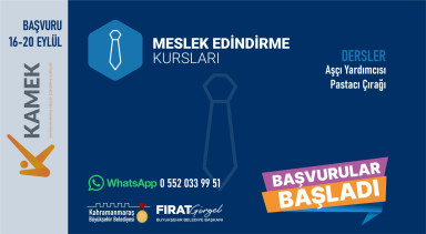 Kahramanmaraş Büyükşehir Belediyesinin, nitelikli iş gücünü artırarak istihdama katkı sağlamak ve vatandaşların mesleki gelişimlerine destek olmak için düzenlediği Meslek Edindirme ve Sanat Eğitimi Kursları’nda (KAMEK) yeni dönem başlıyor. Kişisel Gelişim, Hobi, Meslek Edindirme ve Sanat alanlarında uzman eğitmenler tarafından kursiyerlere; Aşçı Yardımcılığı, Pastacı Çırağı, İngilizce, Diksiyon, Takı Tasarım, Fotoğraf Çekimi, Karakalem Resim, Hüsn-i Hat, Keman, Ney, Halk Oyunları ve Ritim gibi toplam 22 farklı branşta eğitim verilecek. 18 yaş ve üzeri vatandaşların katılabileceği kurslara başvurular 20 Eylül Cuma gününe kadar devam edecek. Büyükşehir Belediyesinden yapılan açıklamada, ücretsiz olarak düzenlenecek kurslara https://kahramanmaras.bel.tr/duyuru/2024/09/16/kamek-atolyeleri-basvuru-formu internet adresi üzerinden çevrimiçi başvuru yapılabileceği ve başvuru şartlarına ilişkin detaylı bilgiye 0552 033 99 51 numaralı WhatsApp Danışma Hattından ulaşılabileceği belirtildi.