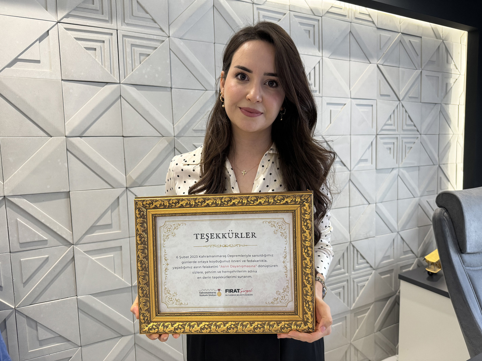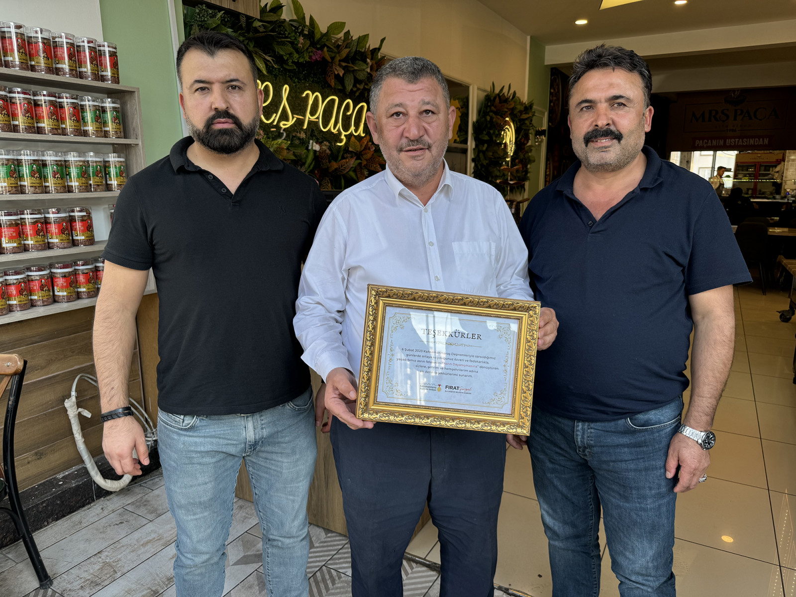 Yeni Kahramanmaraş’ın imar ve inşası için gecesini gündüzüne katarak çalışan Kahramanmaraş Büyükşehir Belediye Başkanı Fırat Görgel, 6 Şubat depremleri sonrası göstermiş olduğu özveri ve gayretle asrın felaketini asrın dayanışmasına dönüştüren esnaflara teşekkür plaketi gönderdi. “6 Şubat 2023 Kahramanmaraş Depremleriyle sarsıldığımız günlerde ortaya koyduğunuz özveri ve fedakârlıkla, yaşadığımız asrın felaketini asrın dayanışmasına dönüştüren sizlere şehrim ve hemşehrilerim adına en derin teşekkürlerimi sunarım” yazılı teşekkür plaketleri, esnaflar tarafından da büyük bir beğeniyle karşılandı. Belgeler, sadece bir takdir göstergesi değil aynı zamanda toplumun dayanışma ve yardımlaşma ruhunun bir nişanesi olarak değerlendirildi.