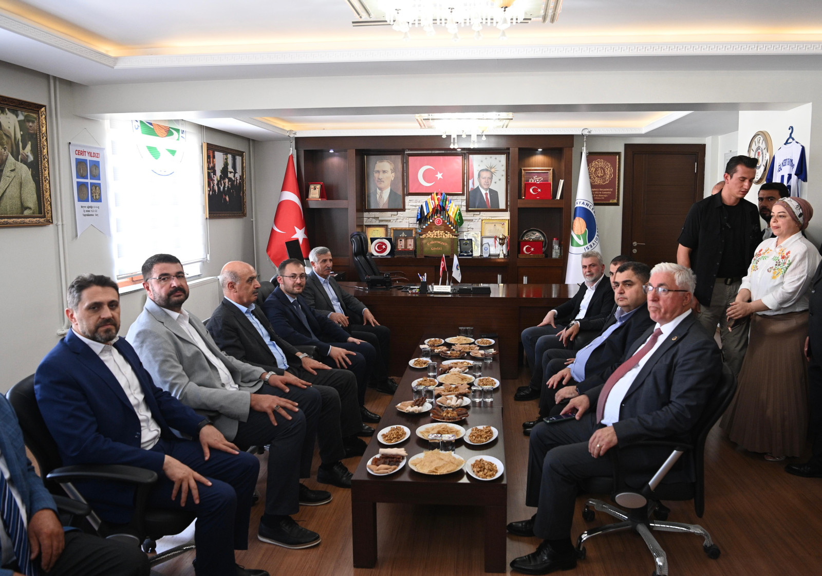 Kahramanmaraş Büyükşehir Belediye Başkanı Fırat Görgel, Çağlayancerit Belediyesi tarafından bu yıl 8’incisi düzenlenen Ceviz ve Kültür Festivali’ne katıldı. Vali Mükerrem Ünlüer ve İl Emniyet Müdürü Nurettin Gökduman’ın da yer aldığı programda heyet ilk olarak Ceviz İşleme ve Paketleme Tesisi’ni ziyaret ederek işletmenin faaliyetlerine ilişkin bilgiler aldı. Heyet devamında festival alanını ziyaret ederek alanda kurulan stantlardan bilgiler alarak ceviz üreticilerine bereketli kazançlar diledi. Vali Mükerem Ünlüer, Büyükşehir Belediye Başkanı Fırat Görgel ve İl Emniyet Müdürü Nurettin Gökduman, Çağlayancerit Kaymakamı Adnan Doğan ve Belediye Başkanı Yemliha Gökdaş’ı da ziyaret ederek ilçede gerçekleştirilen ve planlanan yatırımlara ilişkin istişarelerde bulundu.