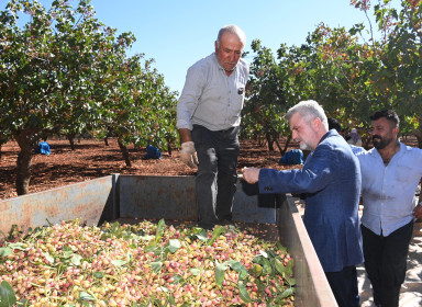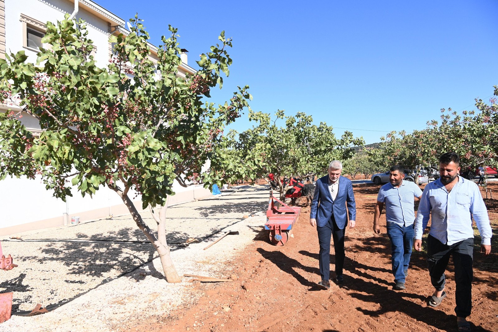 Pazarcık’ta fıstık hasadına katılan Başkan Görgel, “Asırlardır toprağımızda kök salan, çiftçimizin alın teri, şehrimizin rayihasıyla olgunlaşan her bir ürüne sahip çıkmaya devam ediyoruz. Pazarcık Fıstığı da bunlardan bir tanesi. Bunun ulusal ve uluslararası arenada tanıtımı noktasında gerekli adımları atıyoruz. İnşallah Pazarcık Fıstığı da şehrimizin tescilli ürünleri arasındaki yerini alacak” dedi.