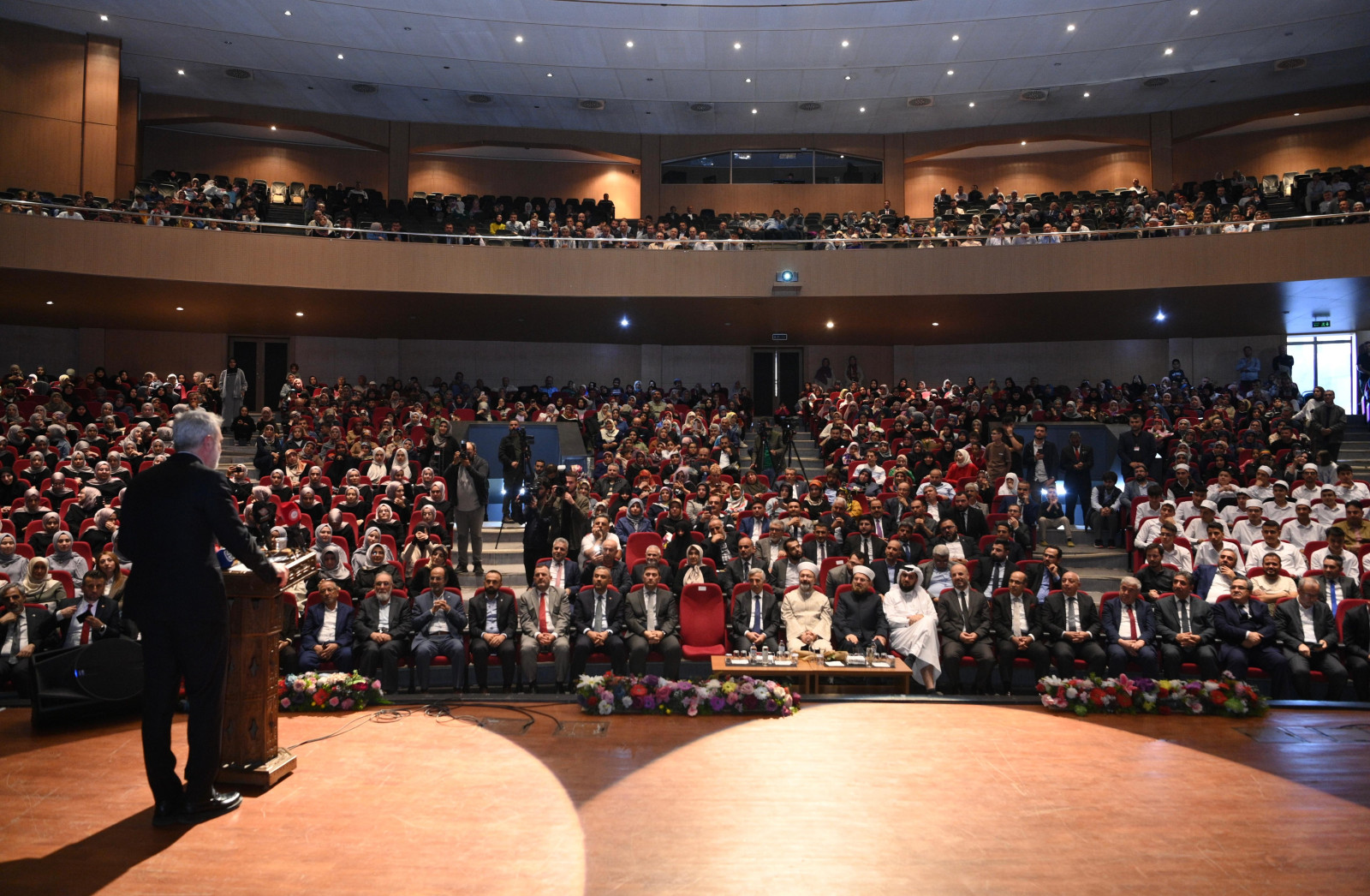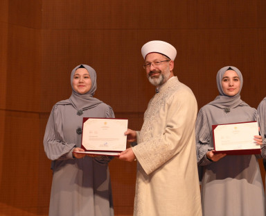 Programda konuşan Diyanet İşleri Başkanı Prof. Dr. Ali Erbaş, “Kur’an hayat rehberidir. Bizler de hayatımızı Kur’an’a göre tanzim etmeliyiz. İnsanları karanlıklardan aydınlığa çıkaran kitaptır Kur’an-ı Kerim. Karanlıklardan aydınlığa çıkmak için Kur’an-ı anlamamız ve ona göre yaşamamız gerekir. Her yıl 15 bine yakın öğrencimiz hafızlık Kur’an kurslarımızdan icazetname alıyor. Bugün de yine yüzlerce hafızımız mezun oluyor. Her birini ayrı ayrı tebrik ediyorum. Onlar geleceğin âlimleri. Diyanet İşleri Başkanlığı olarak bizler de hiçbir zaman onlardan desteğimizi eksik etmeyeceğiz” cümlelerini kaydetti.