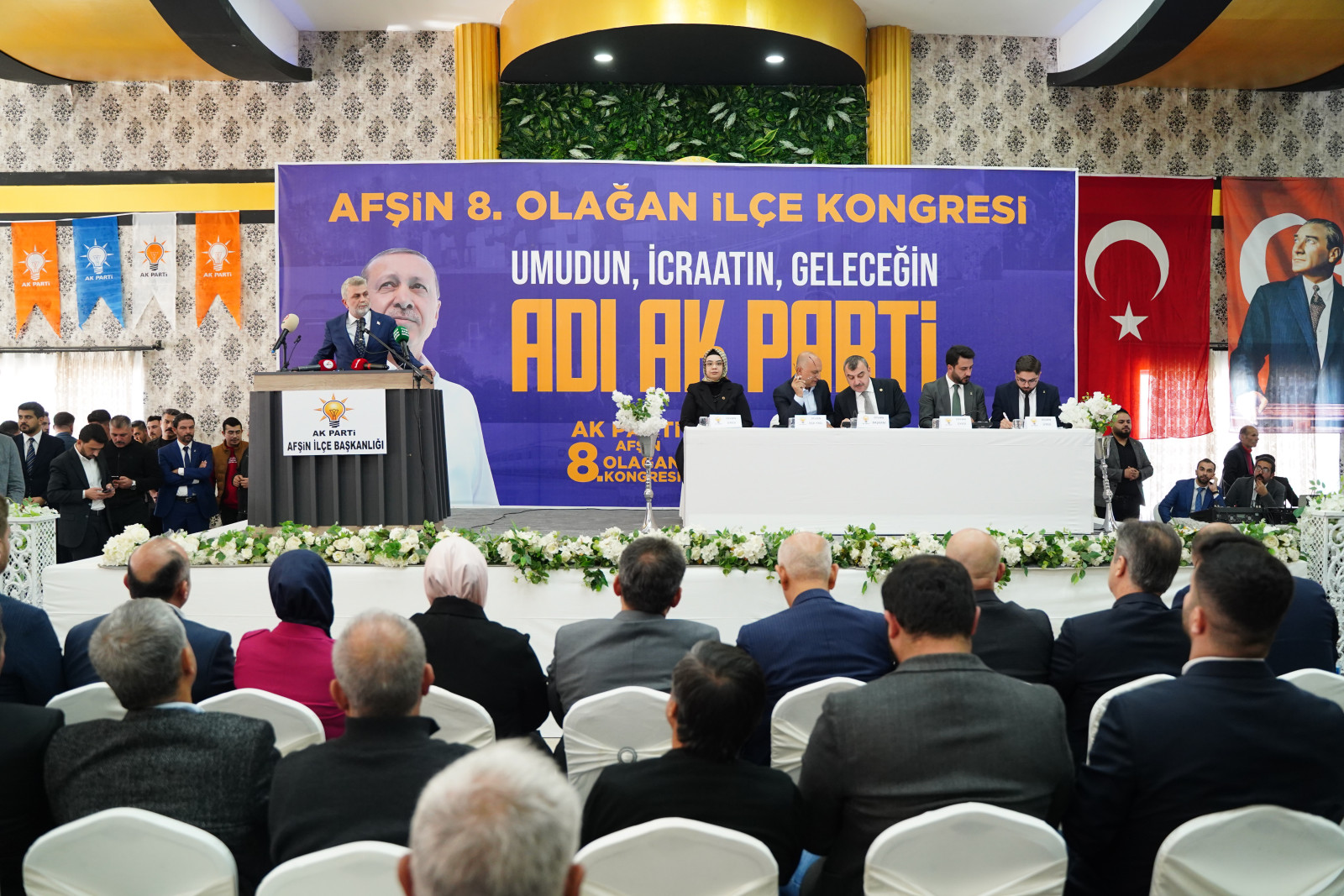 AK Parti Afşin İlçe Teşkilatı 8. Olağan Kongresi, Hayal Düğün Salonu’nda gerçekleştirildi. Programa 66. Hükümet Tarım ve Orman Bakanı Vahit Kirişci, AK Parti Kahramanmaraş Milletvekilleri Tuba Köksal, Mehmet Şahin, Mevlüt Kurt ve Ömer Oruç Bilal Debgici, Büyükşehir Belediye Başkanı Fırat Görgel, AK Parti İl Başkanı Burak Gül, ilçe belediye başkanları, AK Parti İl Kadın Kolları Başkanı Asuman Yavuz, AK Parti İl Gençlik Kolları Başkanı Furkan Ünaldı, il ve ilçe teşkilat üyeleri ile çok sayıda vatandaş katıldı. AK Parti İlçe Başkanı Burhan Karabulut ve yönetiminin güven tazelediği kongrede yeni dönemin Afşin için hayırlara vesile olması temennisinde bulunuldu.