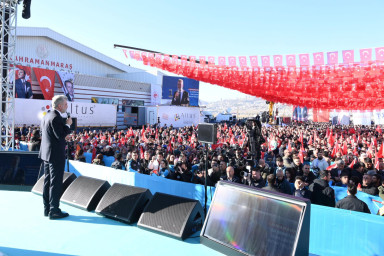 Cumhurbaşkanı Erdoğan konuşmalarının devamında, "Kahramanmaraş'ımızda 155 bininci yuvamızın anahtarlarını teslim etmenin heyecanını ve sevincini yaşıyoruz. 3 bin 499'u Kahramanmaraş'ta olmak üzere deprem bölgemizde toplamda 24 bin 559 yuvamızı daha hak sahibi kardeşlerimize teslim edeceğiz. Bugünkülerle birlikte Kahramanmaraş'ta il ve ilçelerde 22 bin 228 konut ile 5 bin 170 köy evinin kurasını çekmiş olacağız. 2024 sonuna kadar 39 bin 136'sı Maraş'ta olmak üzere 11 ilimizde toplam 201 bin 688 bağımsız bölüm afetzede kardeşlerimize teslim edilecek. Gelecek yıl Kahramanmaraş'ta 63 bin 300 konut ve 5 bin 846 iş yeri olmak üzere 68 bin 876 konut ve iş yeri hak sahiplerine teslim edilecek" dedi.