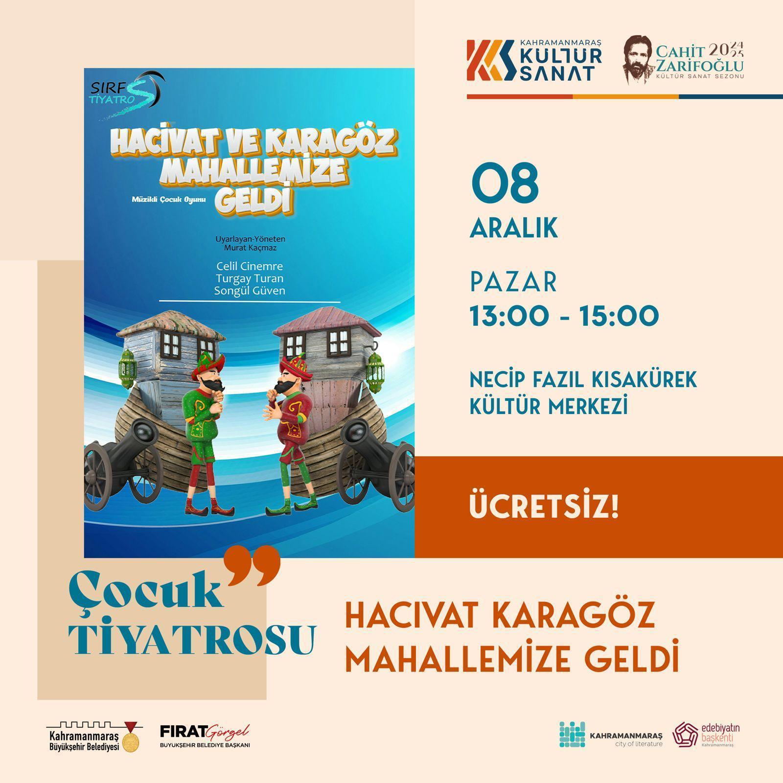 Kahramanmaraş Büyükşehir Belediyesi, Cahit Zarifoğlu Kültür Sanat Sezonu kapsamında düzenlediği etkinliklerle her yaş grubuna hitap etmeye devam ediyor. Özellikle çocukların kültürel ve sanatsal etkinliklerle keyifli bir hafta sonu geçirmesini hedefleyen Büyükşehir Belediyesi, “Hacivat ve Karagöz Mahallemize Geldi” adlı tiyatro gösterisiyle minik izleyicileri bir araya getirecek. 8 Aralık Pazar günü Necip Fazıl Kısakürek Kültür Merkezi’nde gerçekleştirilecek olan gösteri, geleneksel Türk gölge oyununu sahneye taşıyacak. İki seans olarak planlanan etkinlik, saat 13.00 ve 15.00’da izleyicilerine kapılarını açacak. Etkinlikte çocuklar, Hacivat ve Karagöz’ün eğlenceli ve eğitici hikâyeleriyle hem kahkahaya doyacak hem de kültürel mirasımızı tanıma fırsatı bulacak. Gösteri, çocukların yalnızca eğlenmesini değil, aynı zamanda Hacivat ve Karagöz’ün eğitici hikâyeleri aracılığıyla sosyal ve kültürel kazanımlar elde etmesini de hedefliyor. Ücretsiz olarak sahnelenecek gösteriye tüm çocuklar davet edildi.