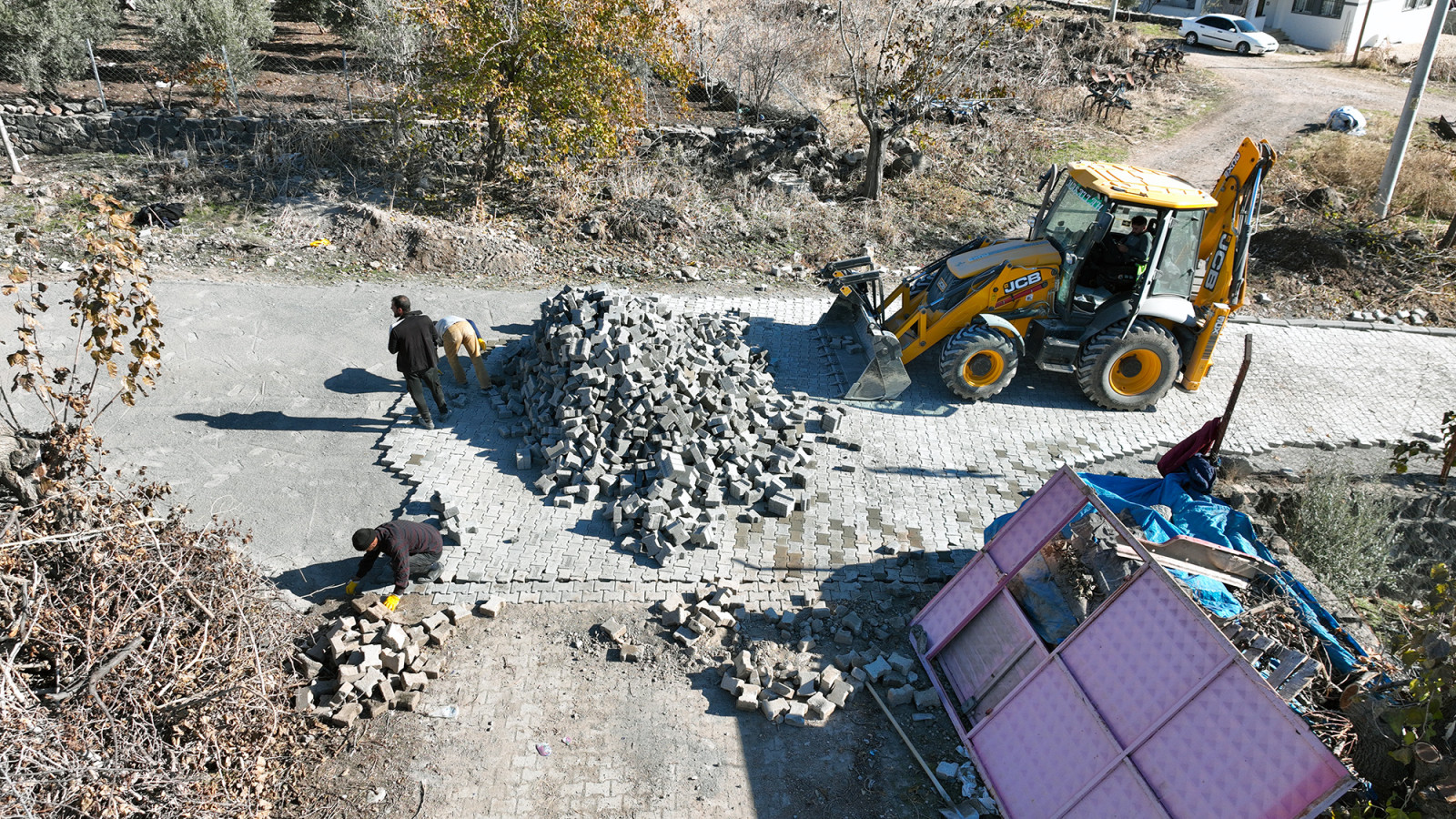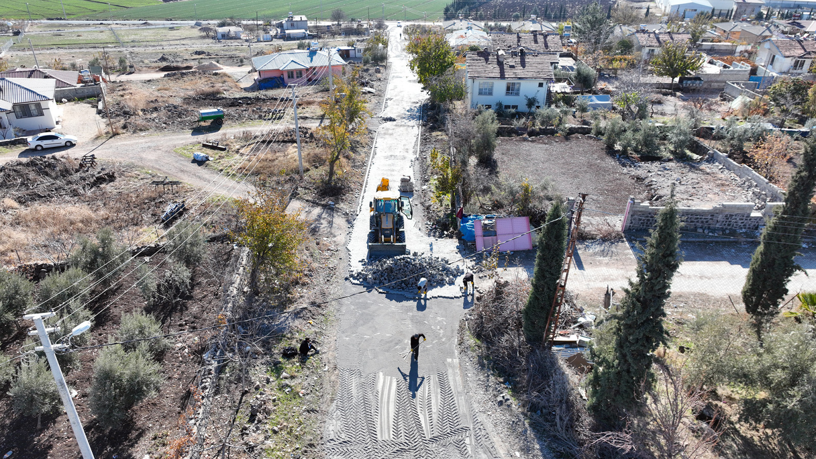 Büyükşehir Belediyesi, Pazarcık’ın kırsal mahallelerinden Çiğdemtepe’de stabilize ara yolları 5 bin metrekare kilit parke ile kaplayarak ulaşım standardını artırıyor.