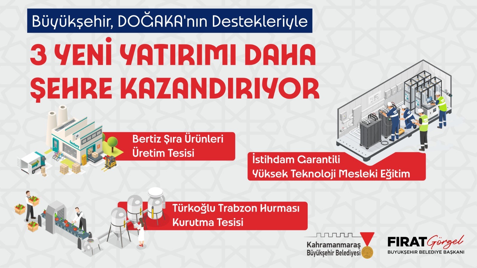 Büyükşehir Belediyesi, paydaş kurumlar iş birliğiyle şehre Bertiz Şıra Ürünleri Üretim Tesisi, İstihdam Garantili Yüksek Teknoloji Mesleki Eğitim Atölyesi ve Türkoğlu Trabzon Hurması Kurutma Tesisi kazandırıyor.