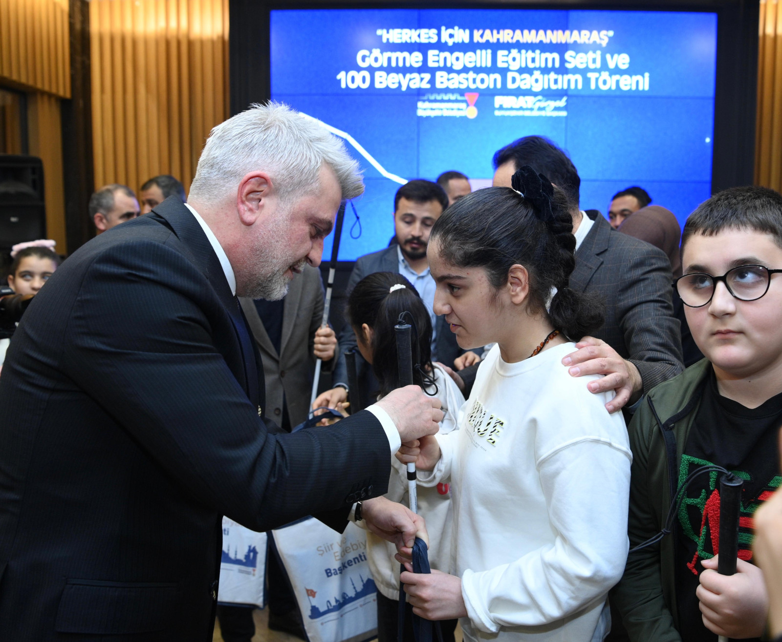 7 - 14 Ocak Beyaz Baston Görme Engelliler Haftası dolayısıyla düzenlenen etkinlikte konuşan Başkan Görgel, “Engelli kardeşlerimizin toplumsal hayatın her alanında güçlü bir şekilde yer alması için çalışmak bizim en önemli görevlerimizden bir tanesi. Yeni Kahramanmaraş’ı engelli kardeşlerimiz için daha erişilebilir bir hale getirmek için yoğun gayretimizi sürdürüyoruz” dedi. Programda görme engelli vatandaşlara 100 beyaz baston ve öğrencilere de eğitim seti verildi.
