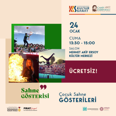 24, 25 ve 26 Ocak tarihlerinde gerçekleşecek bu birbirinden özel etkinliklere katılım tamamen ücretsiz olacak. Kahramanmaraş Büyükşehir Belediyesi, tüm çocukları Mehmet Akif Ersoy Kültür Merkezi’ndeki bu renkli programlara davet ediyor.