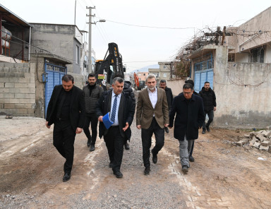 Kahramanmaraş Büyükşehir Belediyesi, 6 Şubat depremlerinin ardından başlattığı kapsamlı altyapı seferberliğini aralıksız sürdürüyor. Şehrin 11 ilçesini kapsayan çalışmalarda deprem sonrası hasar gören altyapı hatlarının yenilenmesinin yanı sıra yeni hatların inşası da hızla devam ediyor. Büyükşehir Belediye Başkanı Fırat Görgel, Dulkadiroğlu ilçesi Yahya Kemal Mahallesi’nde KASKİ Genel Müdürlüğü tarafından yürütülen yağmursuyu hattı imalatlarını yerinde inceledi. KASKİ Genel Müdürü Necati Çalık’ın da yer aldığı incelemelerde Başkan Görgel, sahada yürütülen çalışmalar hakkında detaylı bilgiler aldı.