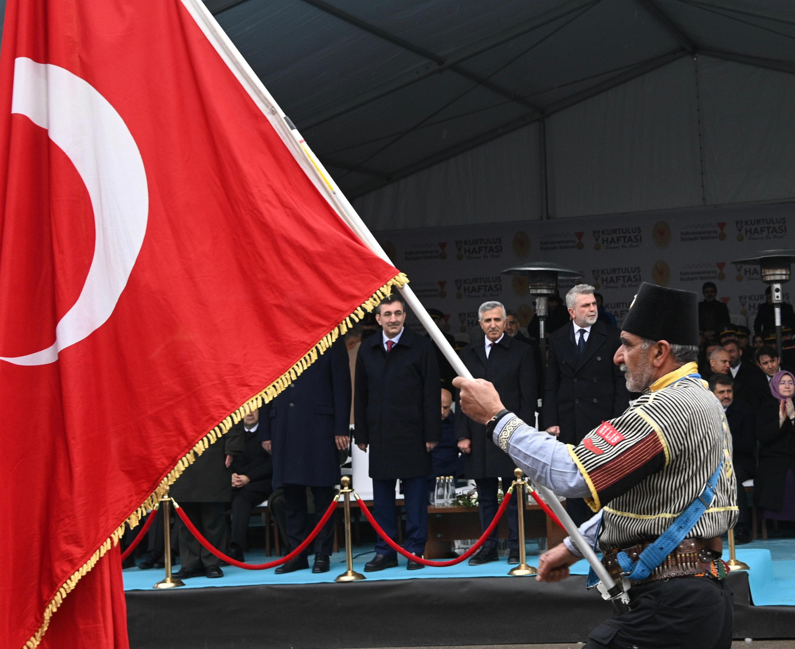 Cumhurbaşkanı Yardımcısı Cevdet Yılmaz, “Kahramanmaraş’ın düşman işgalinden kurtuluşunun 105. yılında burada olmaktan duyduğum mutluluğu ifade etmek istiyorum. 12 Şubat 1920, Kahramanmaraş’ın Fransız işgalinden kurtulduğu ve milletimizin özgürlük sevdasını tüm dünyaya gösterdiği şanlı bir tarihtir. Kurtuluş mücadelesinin meşalesinin yakıldığı ilk yerlerden biri olan Maraş’ta halk kendi çabaları ve iradeleriyle bir direniş başlatmışlardır. Rıdvan Hoca’nın ‘Kalesinde Fransız bayrağı dalgalanan bir yerde Cuma Namazı kılmak caiz değildir’ sözüyle ayağa kalkan bu kahraman şehir; Arlanbey’i, Sütçü İmam’ı ve nice meçhul kahramanlarıyla işgalcilere karşı 22 gün 22 gece mücadele vermiştir. Maraş’ı Kahramanmaraş yapan bu eşsiz direniş, sadece bu toprakları değil tüm Anadolu’nun bağımsızlık mücadelesine ilham kaynağı olmuştur. Aynı ruh bugün de emperyalist güçlere karşı onurunu, toprağını, vatanını, mukaddesatını koruma gayreti içinde olan tüm mazlumlara da ilham vermektedir” dedi.
