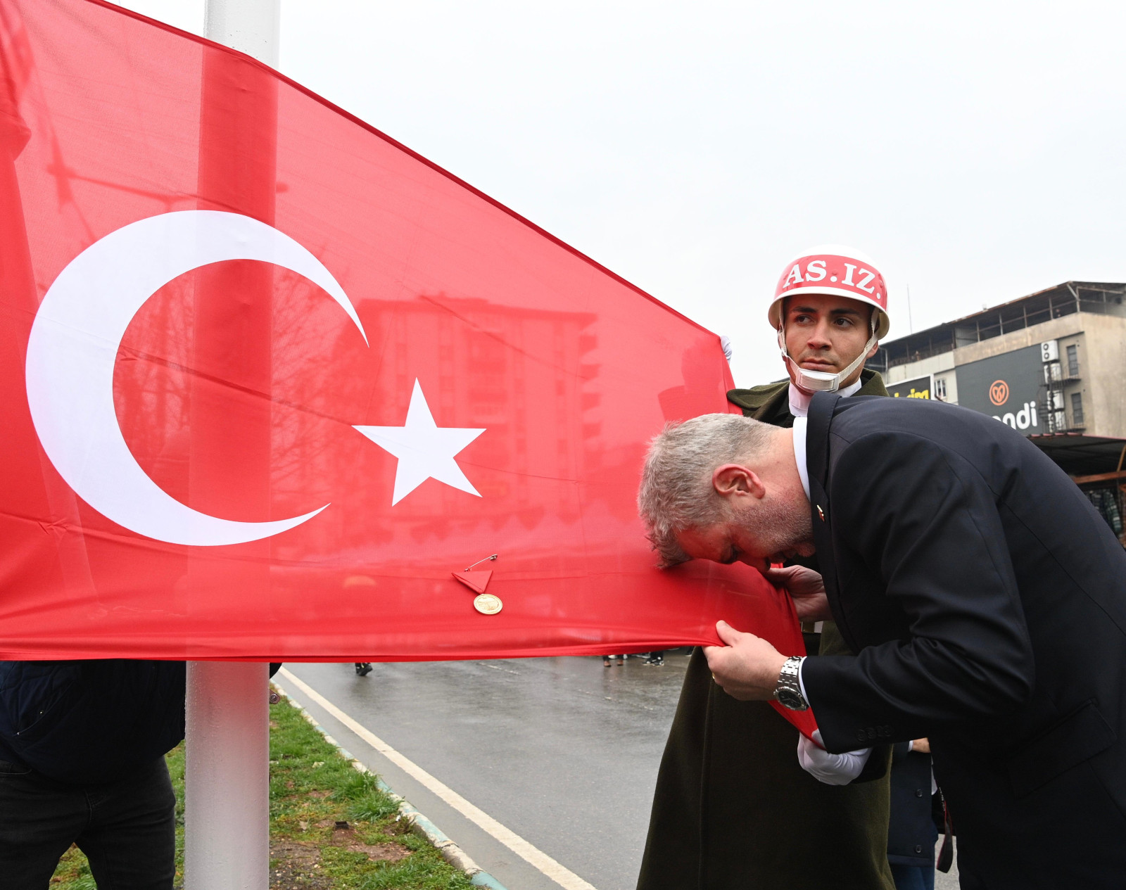 Kutlama programında, Kahramanmaraş’ın onuru olan kırmızı şeritli İstiklal Madalyası, Büyükşehir Belediye Başkanı Fırat Görgel tarafından Türk Bayrağı’na takılarak göndere çekildi. Bu anlamlı an, alanı dolduran binlerce vatandaş tarafından coşku ve gururla karşılandı.