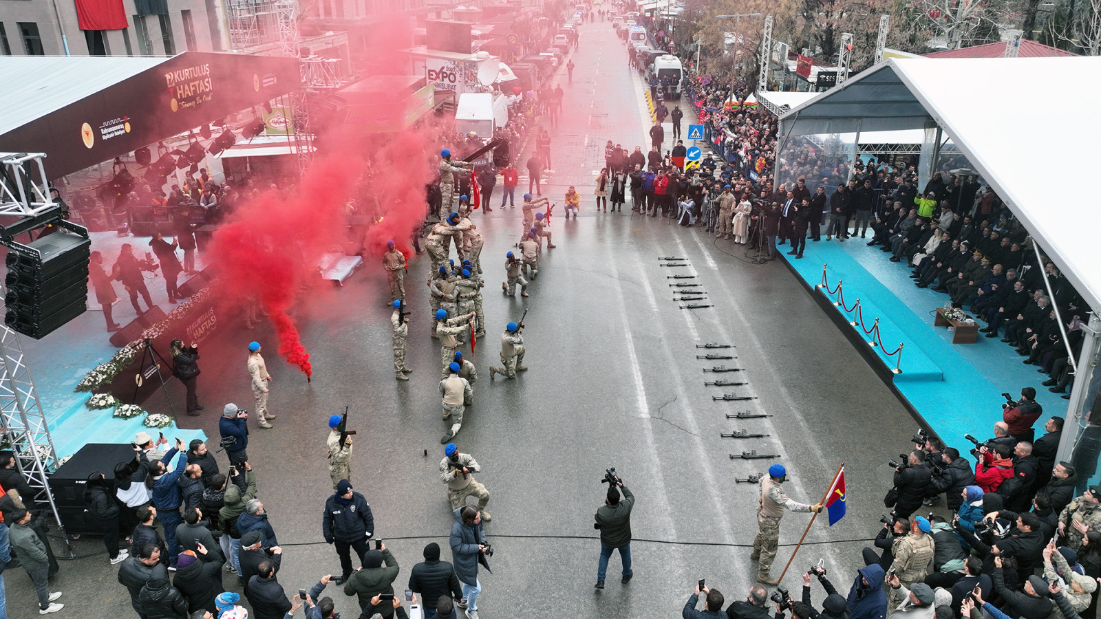 Kahramanmaraş’ın düşman işgalinden kurtuluşunun 105. yıl dönümü, Trabzon Caddesi’nde düzenlenen etkinliklerle kutlandı. Vatandaşların yoğun ilgisiyle gerçekleşen programda, devlet yetkilileri ve protokol üyeleri, coşkulu kalabalıkla buluştu. Kutlamalar; Cumhurbaşkanı Yardımcısı Cevdet Yılmaz, Vali Mükerrem Ünlüer, Garnizon Komutanı Tuğgeneral Tolga Genç ve Büyükşehir Belediye Başkanı Fırat Görgel’in, araç üzerinde katılımcıları selamlamasıyla başladı. Programda; Sağlık Bakanı Prof. Dr. Kemal Memişoğlu, 66. Hükümet Tarım ve Orman Bakanı Prof. Dr. Vahit Kirişci, milletvekilleri, şehir protokolü, siyasi parti ve STK temsilcileri ile çok sayıda vatandaş da yer aldı.