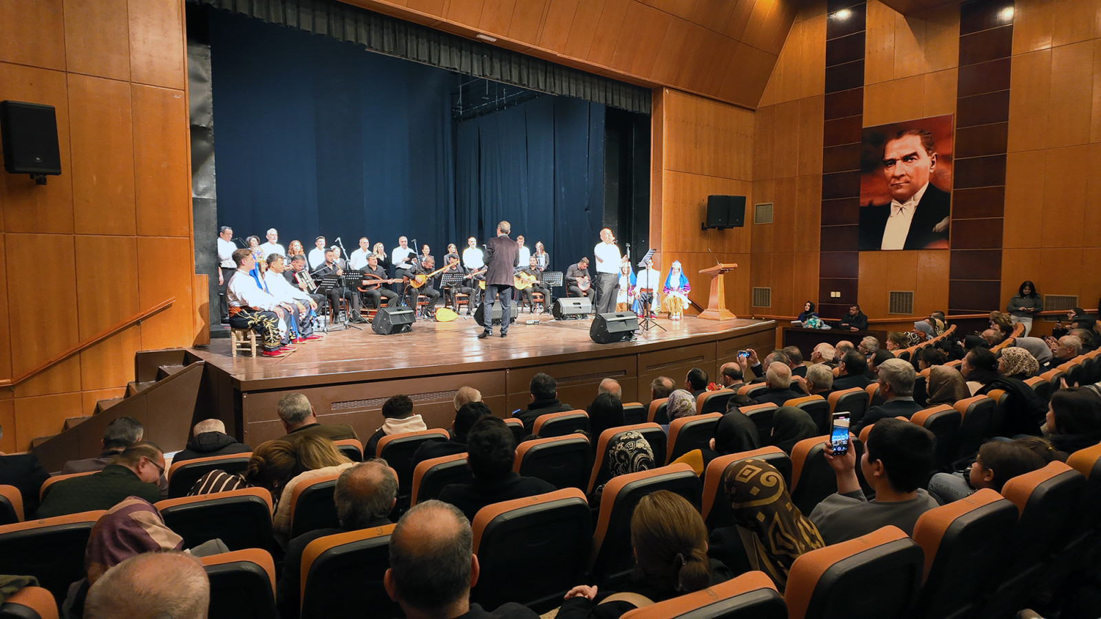 Büyükşehir Belediyesi ev sahipliğinde düzenlenen Türk Halk Müziği konseri sanatseverlere unutulmaz bir gece yaşattı. Salon tamamen dolarken seyirciler türkülere hep bir ağızdan eşlik ederek geceye renk kattı.