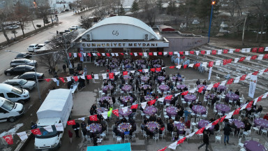 Büyükşehir Belediyesinin düzenlediği “İlçemde İftar Var” programı, Nurhak’ta vatandaşlarla buluştu. Cumhuriyet Meydanı’nda kurulan iftar sofrasında yüzlerce kişi aynı sofrada oruç açarak Ramazan’ın manevi iklimini birlikte yaşadı.