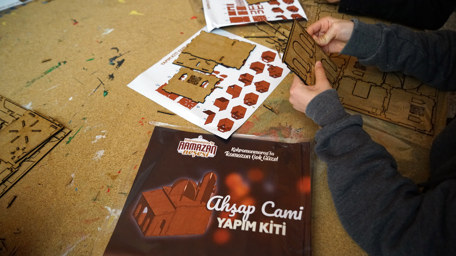 Sahne Maraş Tiyatro Okulu tarafından sahnelenen Karagöz ve Hacivat oyunu, salonu dolduran minik izleyicilere neşe dolu anlar yaşattı. Geleneksel değerlerin eğlenceli bir dille aktarıldığı gösteri, çocukların kahkahalarıyla renklendi. Öte yandan Ahşap Cami Yapım Atölyesi'nde ise minikler kendi cami maketlerini yaparak el becerilerini geliştirirken, grup çalışmaları sayesinde paylaşma ve iş birliği duygularını pekiştirdi.