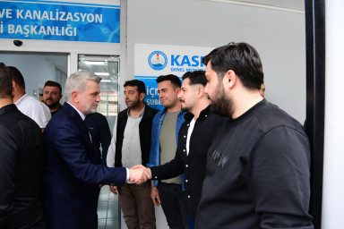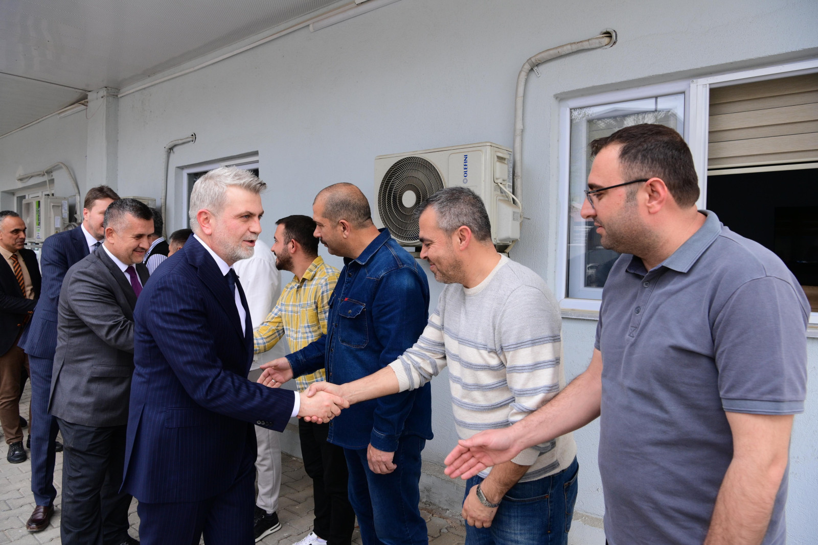 Ramazan Bayramı öncesi birimleri tek tek ziyaret edip belediye personellerinin bayramını tebrik eden Başkan Görgel, “Vatandaşlarımıza en iyi hizmeti sunmak, şehrimizi daha ileriye taşımak adına gösterdikleri fedakârlık için tüm mesai arkadaşlarımıza gönülden teşekkür ediyorum” dedi.